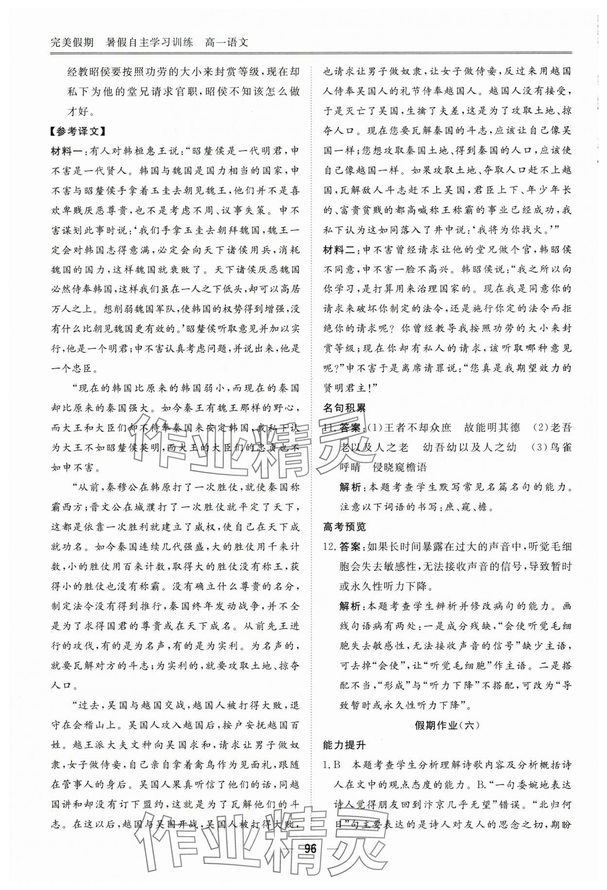 注:目前有些书本章节名称可能整理的还不是很完善,但都是按照顺序排列的,请同学们按照顺序仔细查找。练习册 2024年完美假期暑假自主学习训练高一语文 答案主要是用来给同学们做完题方便对答案用的,请勿直接抄袭。