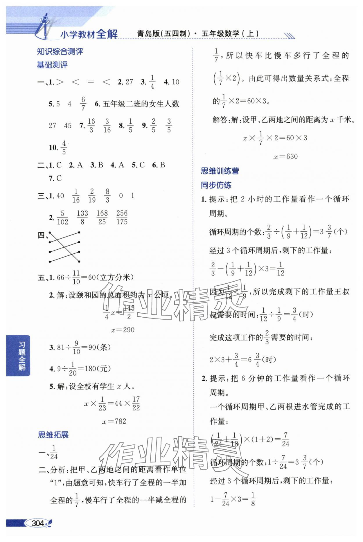 注:目前有些书本章节名称可能整理的还不是很完善,但都是按照顺序排列的,请同学们按照顺序仔细查找。练习册 2024年教材全解五年级数学上册青岛版54制 答案主要是用来给同学们做完题方便对答案用的,请勿直接抄袭。