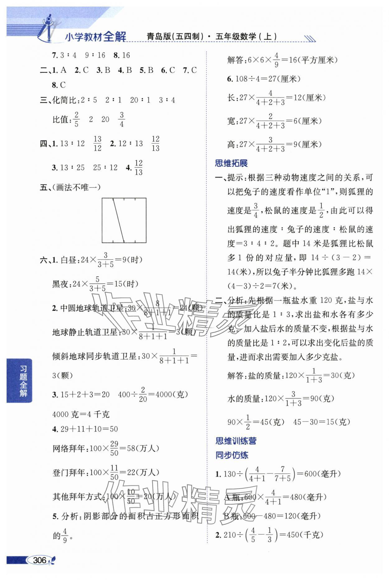 注:目前有些书本章节名称可能整理的还不是很完善,但都是按照顺序排列的,请同学们按照顺序仔细查找。练习册 2024年教材全解五年级数学上册青岛版54制 答案主要是用来给同学们做完题方便对答案用的,请勿直接抄袭。