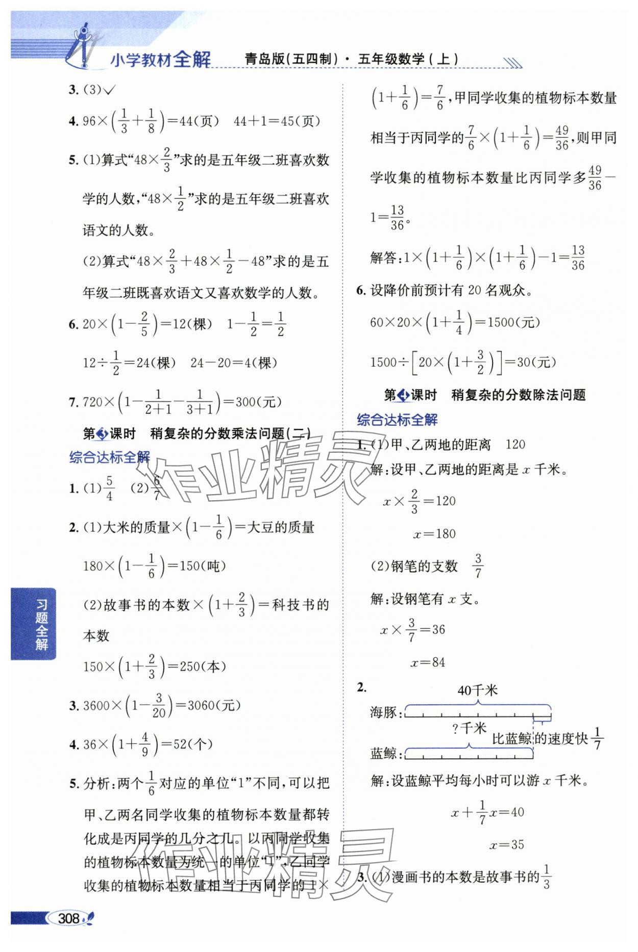 注:目前有些书本章节名称可能整理的还不是很完善,但都是按照顺序排列的,请同学们按照顺序仔细查找。练习册 2024年教材全解五年级数学上册青岛版54制 答案主要是用来给同学们做完题方便对答案用的,请勿直接抄袭。