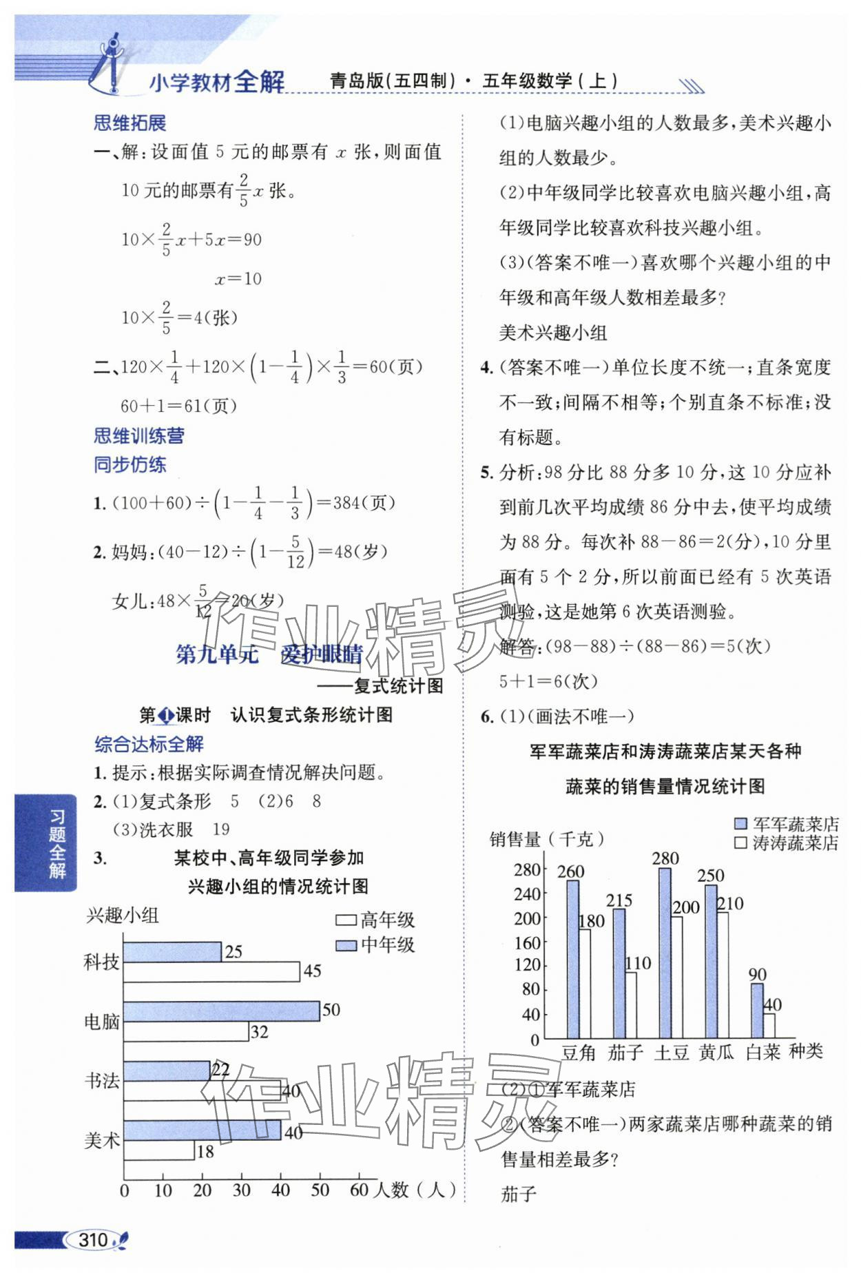 2024年教材全解五年级数学上册青岛版54制