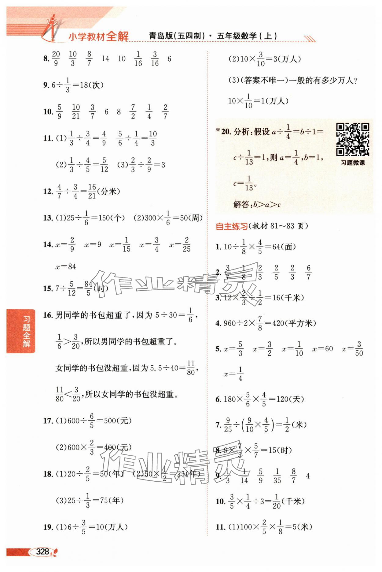注:目前有些书本章节名称可能整理的还不是很完善,但都是按照顺序排列的,请同学们按照顺序仔细查找。练习册 2024年教材课本五年级数学上册青岛版54制 答案主要是用来给同学们做完题方便对答案用的,请勿直接抄袭。