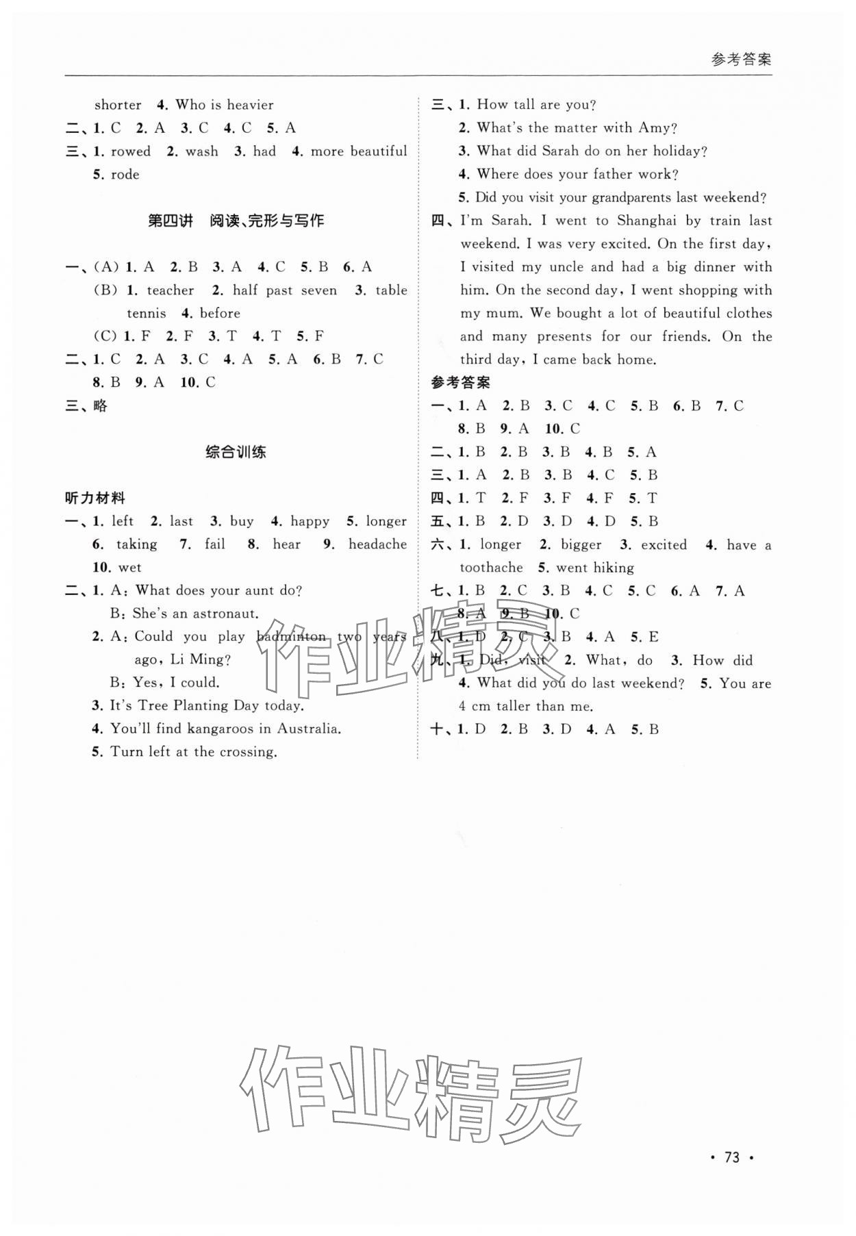 相关练习册答案