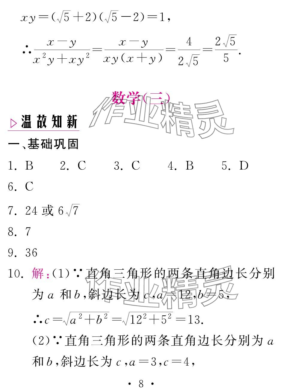 注:目前有些书本章节名称可能整理的还不是很完善,但都是按照顺序排列的,请同学们按照顺序仔细查找。练习册 2024年天舟文化精彩暑假团结出版社八年级数学人教版 答案主要是用来给同学们做完题方便对答案用的,请勿直接抄袭。