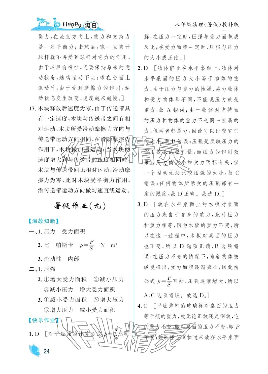 注:目前有些书本章节名称可能整理的还不是很完善,但都是按照顺序排列的,请同学们按照顺序仔细查找。练习册 2024年暑假Happy假日八年级物理教科版 答案主要是用来给同学们做完题方便对答案用的,请勿直接抄袭。