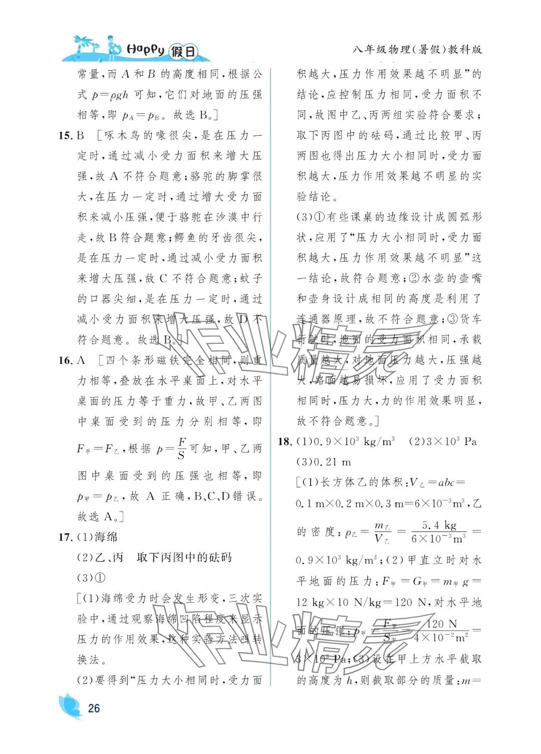 注:目前有些书本章节名称可能整理的还不是很完善,但都是按照顺序排列的,请同学们按照顺序仔细查找。练习册 2024年暑假Happy假日八年级物理教科版 答案主要是用来给同学们做完题方便对答案用的,请勿直接抄袭。