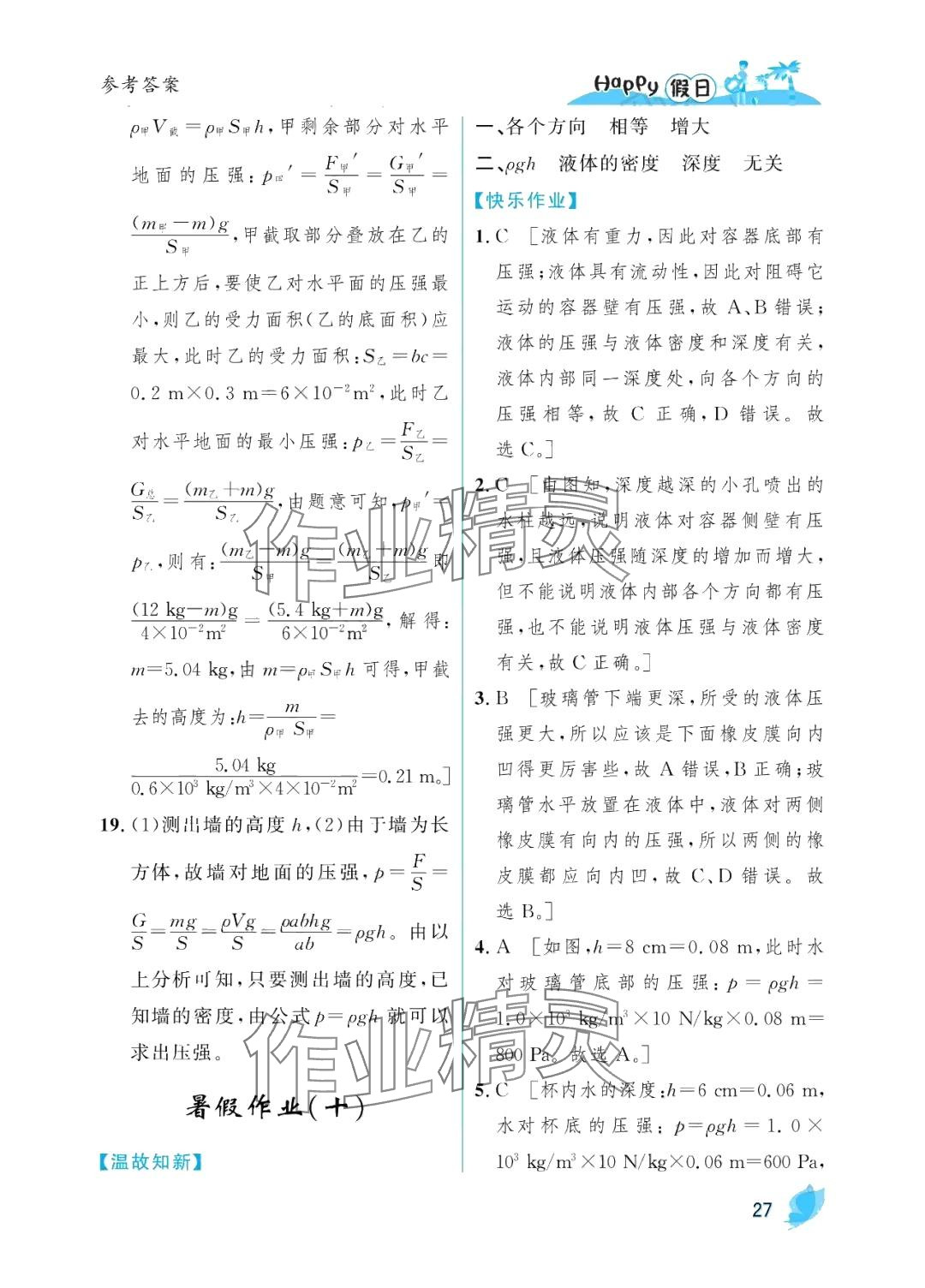 注:目前有些书本章节名称可能整理的还不是很完善,但都是按照顺序排列的,请同学们按照顺序仔细查找。练习册 2024年暑假Happy假日八年级物理教科版 答案主要是用来给同学们做完题方便对答案用的,请勿直接抄袭。