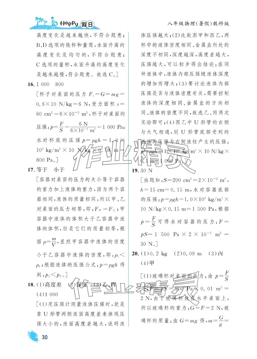 注:目前有些书本章节名称可能整理的还不是很完善,但都是按照顺序排列的,请同学们按照顺序仔细查找。练习册 2024年暑假Happy假日八年级物理教科版 答案主要是用来给同学们做完题方便对答案用的,请勿直接抄袭。