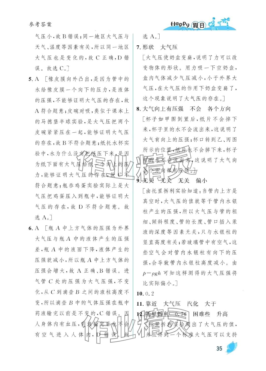 注:目前有些书本章节名称可能整理的还不是很完善,但都是按照顺序排列的,请同学们按照顺序仔细查找。练习册 2024年暑假Happy假日八年级物理教科版 答案主要是用来给同学们做完题方便对答案用的,请勿直接抄袭。