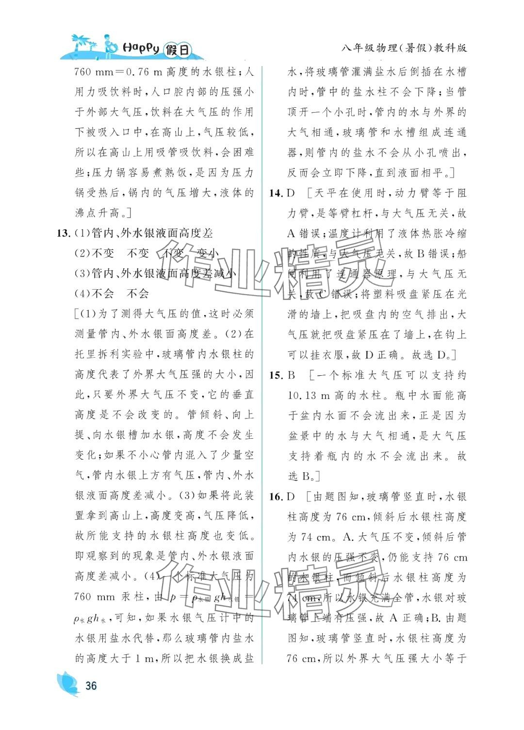 注:目前有些书本章节名称可能整理的还不是很完善,但都是按照顺序排列的,请同学们按照顺序仔细查找。练习册 2024年暑假Happy假日八年级物理教科版 答案主要是用来给同学们做完题方便对答案用的,请勿直接抄袭。