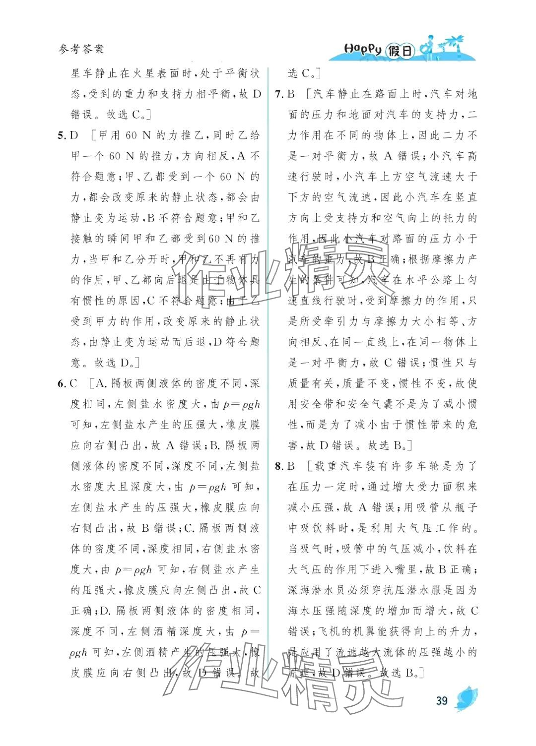注:目前有些书本章节名称可能整理的还不是很完善,但都是按照顺序排列的,请同学们按照顺序仔细查找。练习册 2024年暑假Happy假日八年级物理教科版 答案主要是用来给同学们做完题方便对答案用的,请勿直接抄袭。