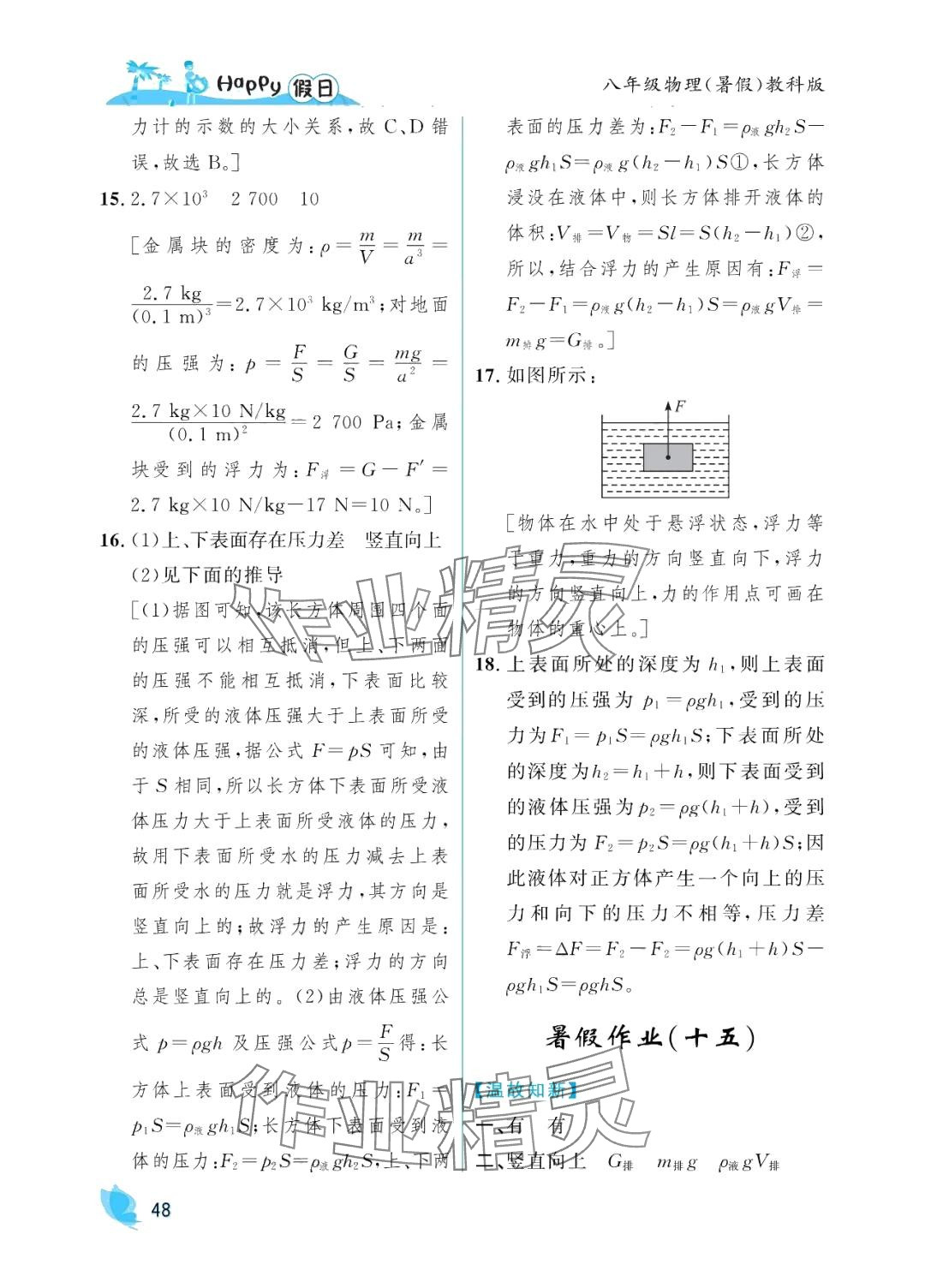 注:目前有些书本章节名称可能整理的还不是很完善,但都是按照顺序排列的,请同学们按照顺序仔细查找。练习册 2024年暑假Happy假日八年级物理教科版 答案主要是用来给同学们做完题方便对答案用的,请勿直接抄袭。