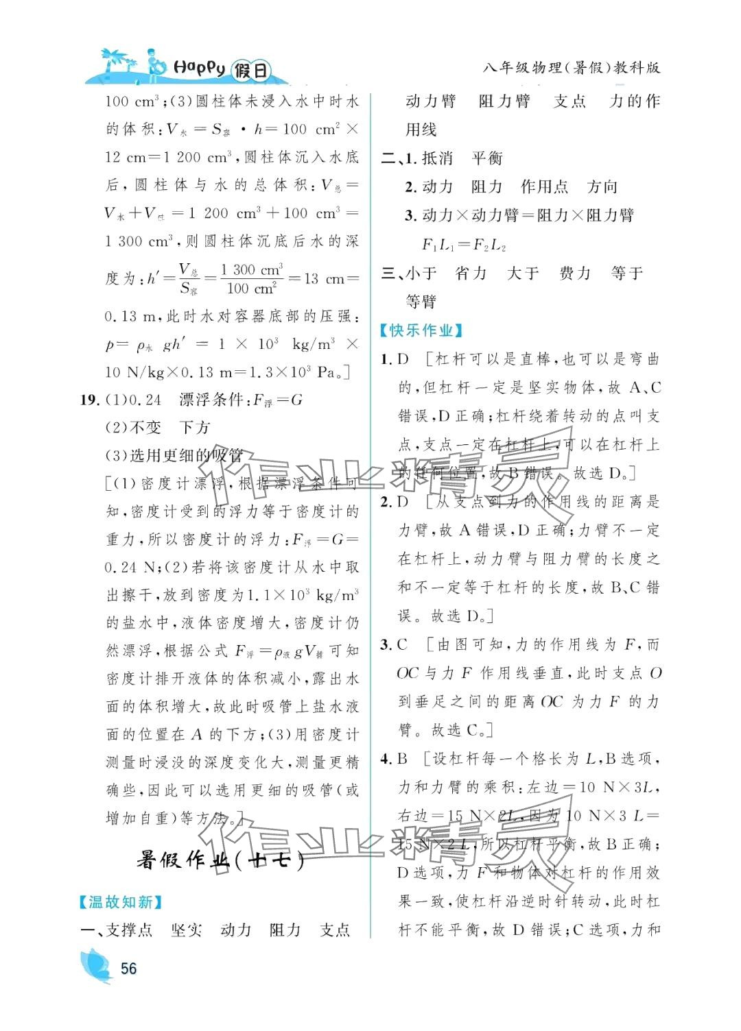 注:目前有些书本章节名称可能整理的还不是很完善,但都是按照顺序排列的,请同学们按照顺序仔细查找。练习册 2024年暑假Happy假日八年级物理教科版 答案主要是用来给同学们做完题方便对答案用的,请勿直接抄袭。