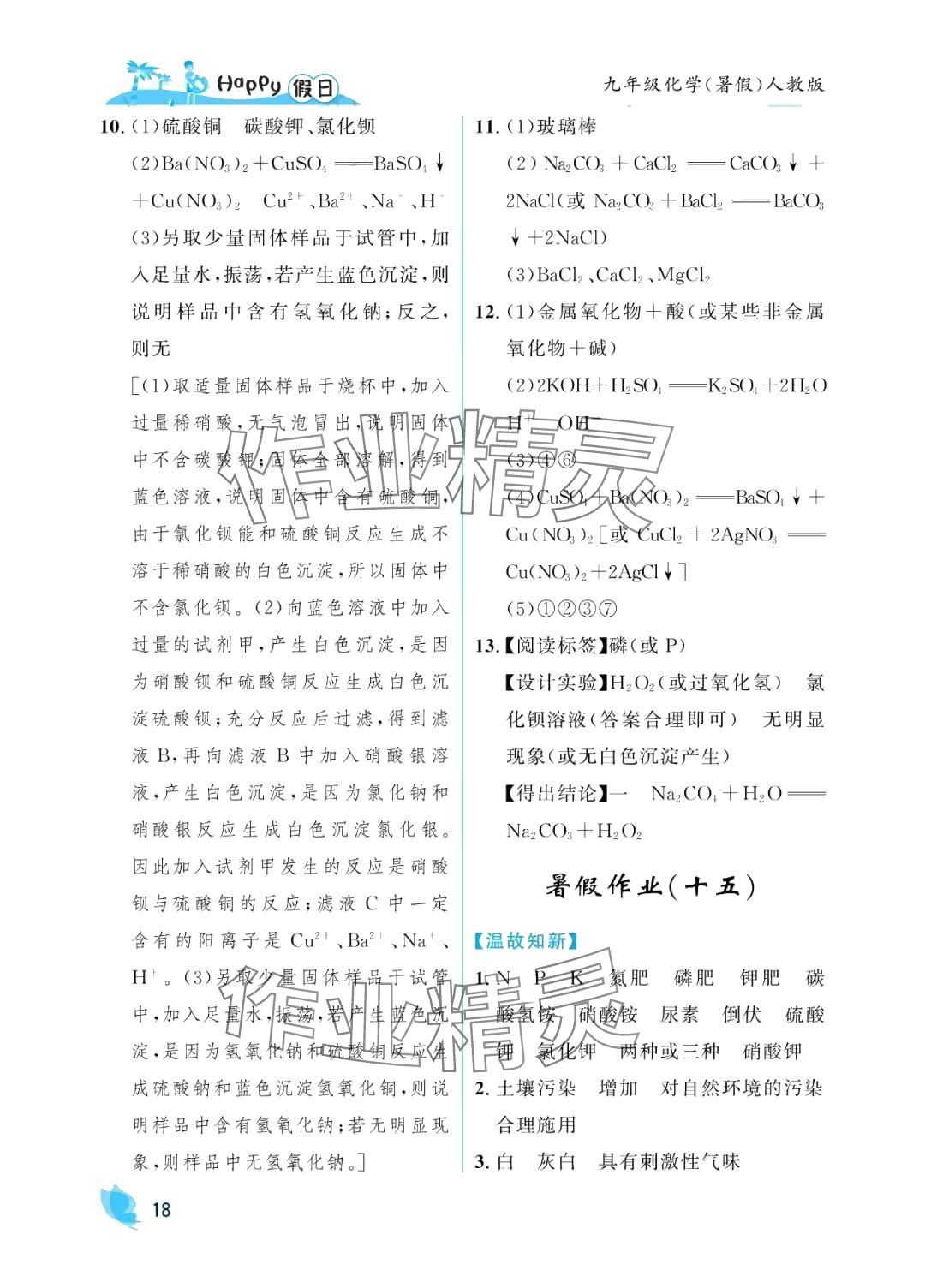 注:目前有些书本章节名称可能整理的还不是很完善,但都是按照顺序排列的,请同学们按照顺序仔细查找。练习册 2024年暑假Happy假日九年级化学人教版 答案主要是用来给同学们做完题方便对答案用的,请勿直接抄袭。