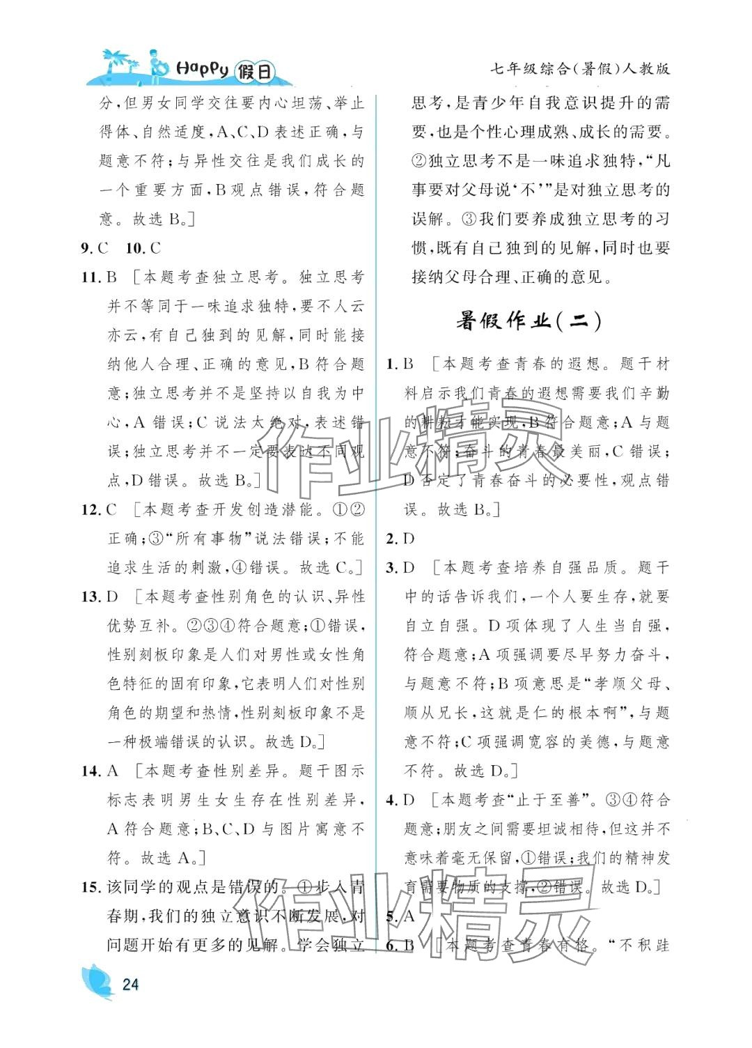 注:目前有些书本章节名称可能整理的还不是很完善,但都是按照顺序排列的,请同学们按照顺序仔细查找。练习册 2024年暑假Happy假日七年级综合人教版 答案主要是用来给同学们做完题方便对答案用的,请勿直接抄袭。