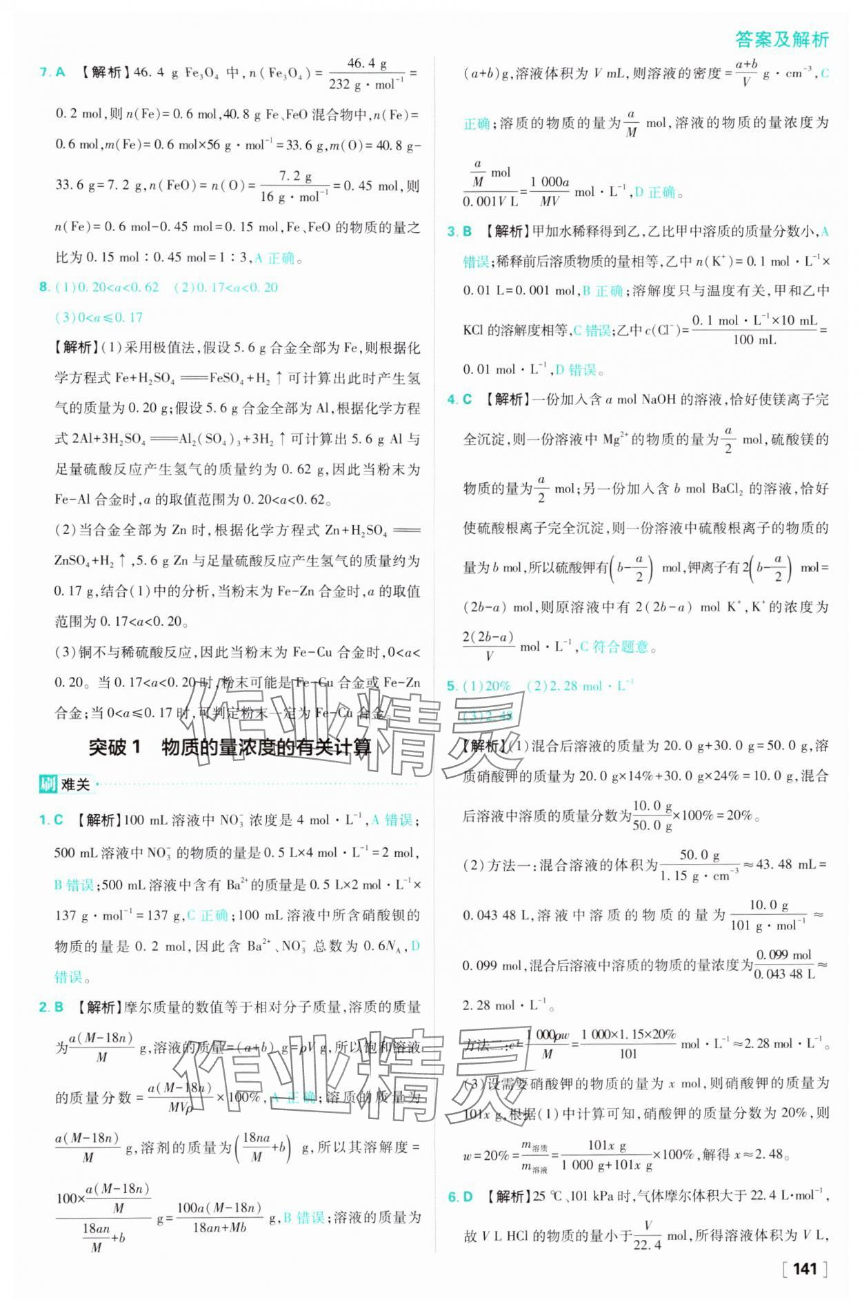 注:目前有些书本章节名称可能整理的还不是很完善,但都是按照顺序排列的,请同学们按照顺序仔细查找。练习册 2024年高中必刷题高一化学必修第一册苏教版 答案主要是用来给同学们做完题方便对答案用的,请勿直接抄袭。