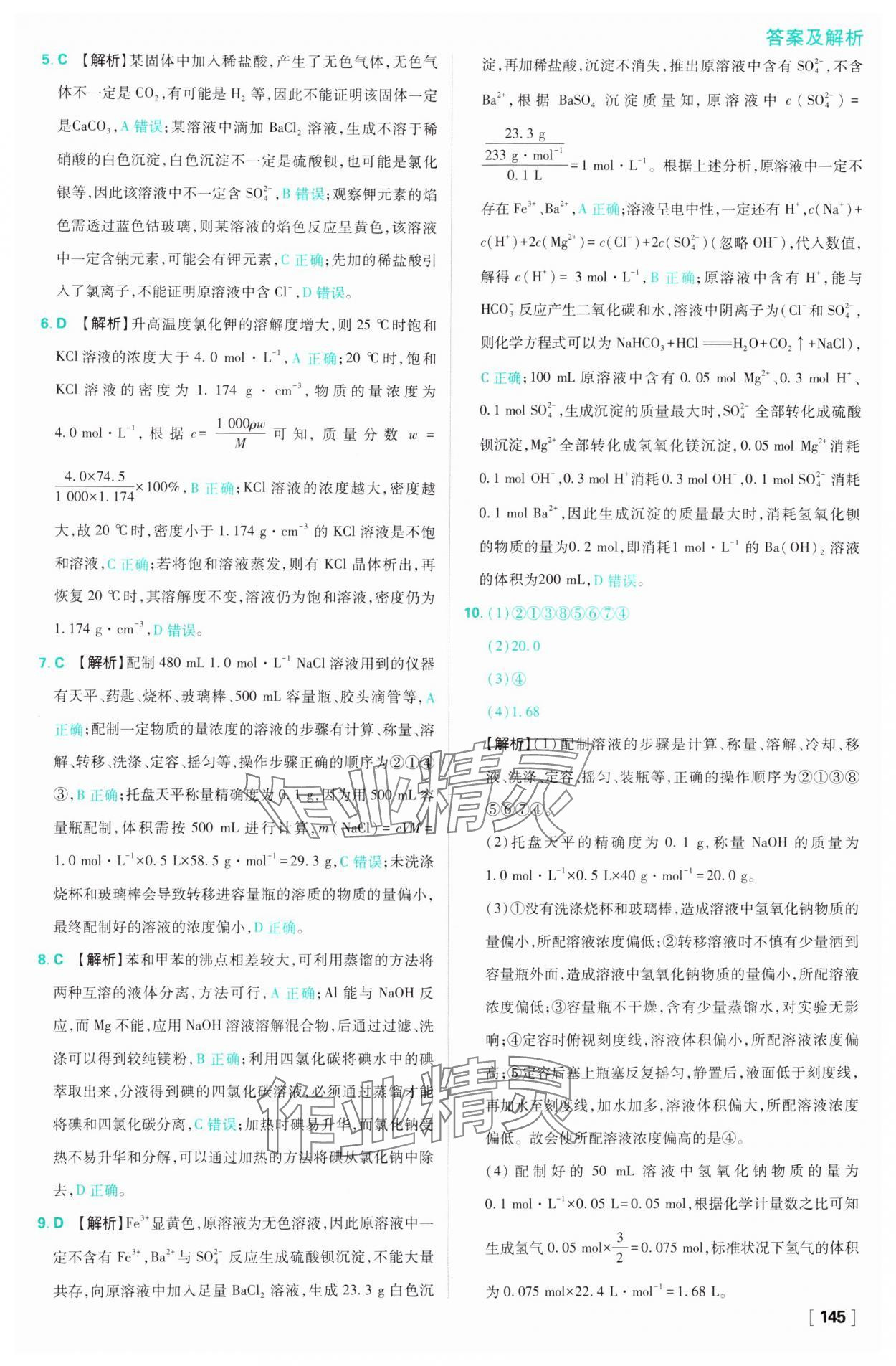 注:目前有些书本章节名称可能整理的还不是很完善,但都是按照顺序排列的,请同学们按照顺序仔细查找。练习册 2024年高中必刷题高一化学必修第一册苏教版 答案主要是用来给同学们做完题方便对答案用的,请勿直接抄袭。