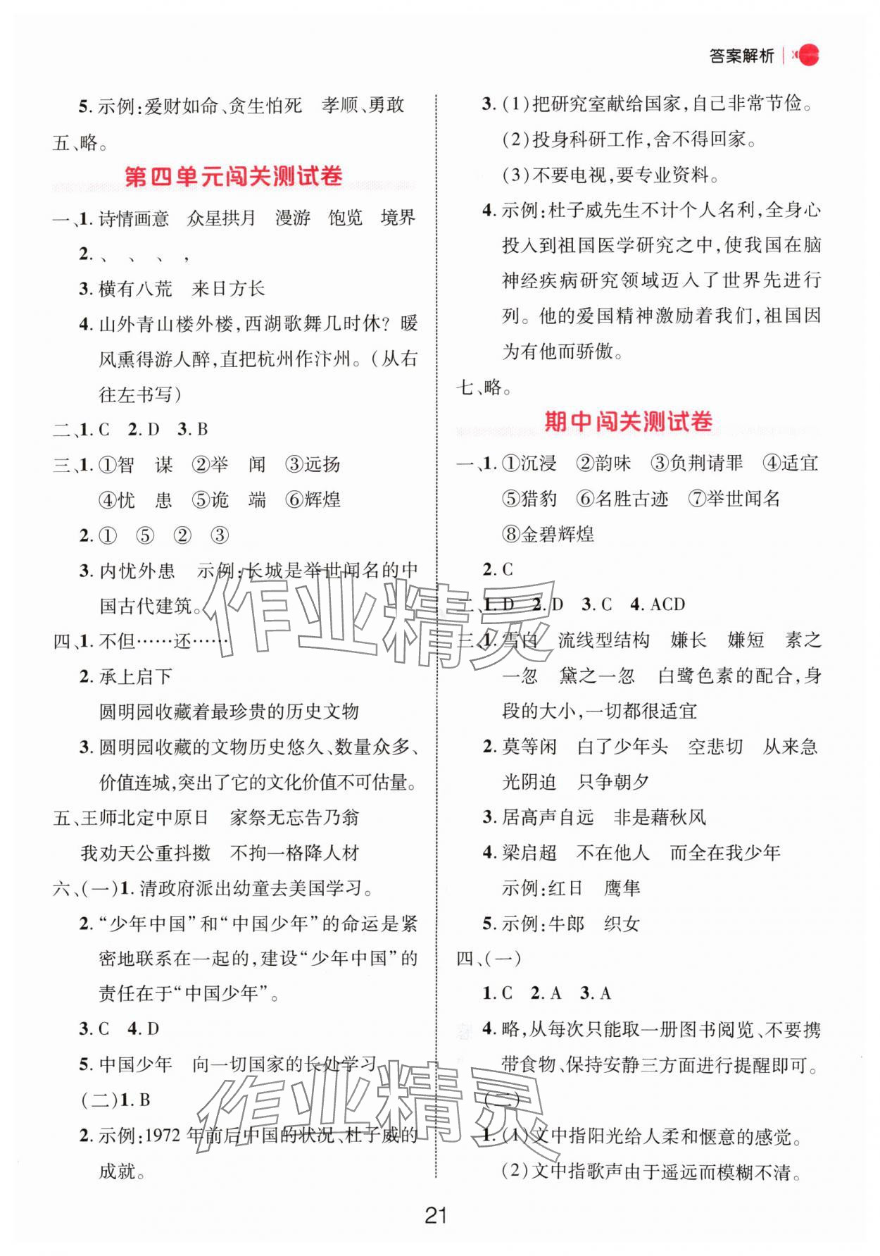 注:目前有些书本章节名称可能整理的还不是很完善,但都是按照顺序排列的,请同学们按照顺序仔细查找。练习册 2024年细解巧练五年级语文上册人教版 答案主要是用来给同学们做完题方便对答案用的,请勿直接抄袭。