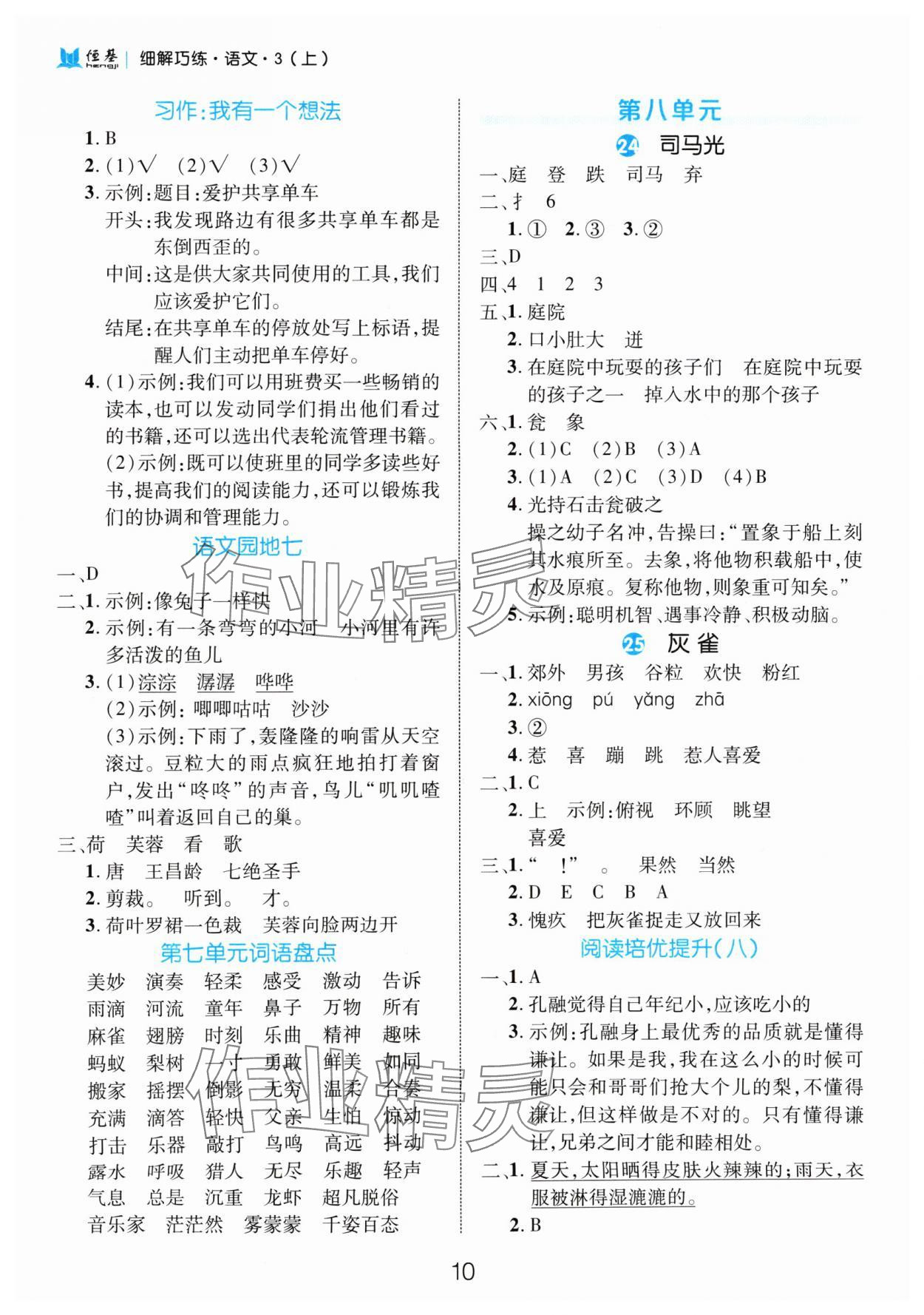 注:目前有些书本章节名称可能整理的还不是很完善,但都是按照顺序排列的,请同学们按照顺序仔细查找。练习册 2024年细解巧练三年级语文上册人教版 答案主要是用来给同学们做完题方便对答案用的,请勿直接抄袭。