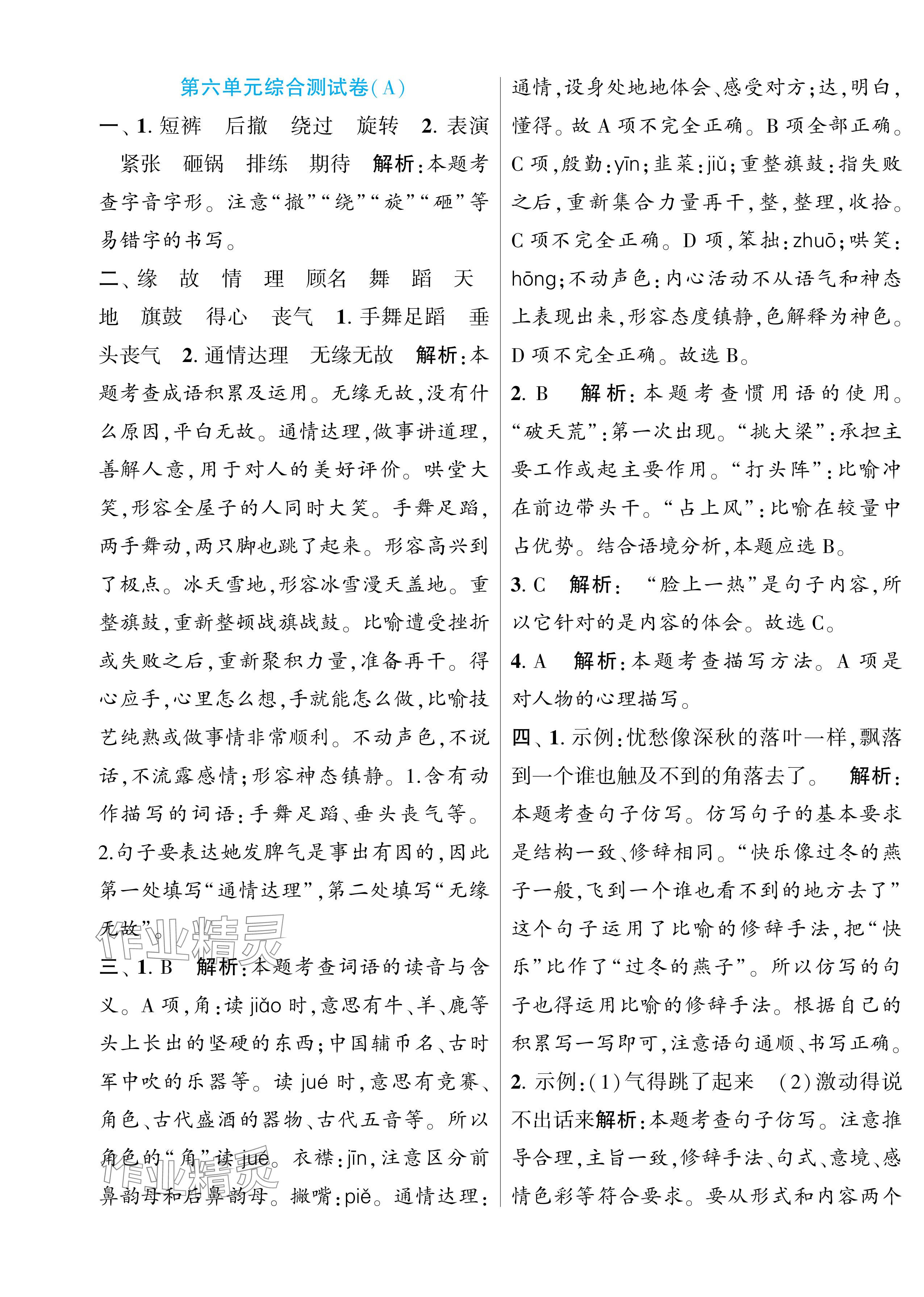 注:目前有些书本章节名称可能整理的还不是很完善,但都是按照顺序排列的,请同学们按照顺序仔细查找。练习册 2024年学霸提优大试卷四年级语文上册人教版 答案主要是用来给同学们做完题方便对答案用的,请勿直接抄袭。