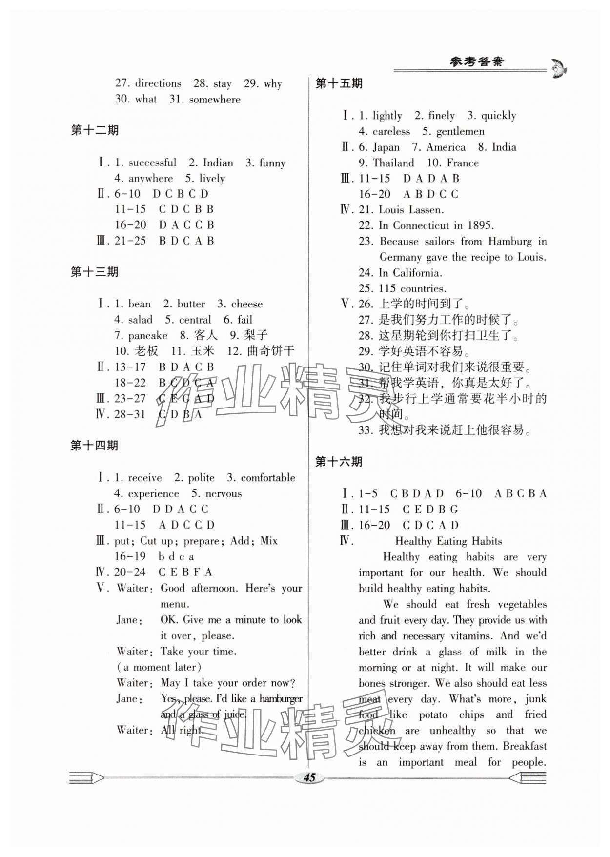 注:目前有些书本章节名称可能整理的还不是很完善,但都是按照顺序排列的,请同学们按照顺序仔细查找。练习册 2024年仁爱英语开心暑假科学普及出版社八年级 答案主要是用来给同学们做完题方便对答案用的,请勿直接抄袭。