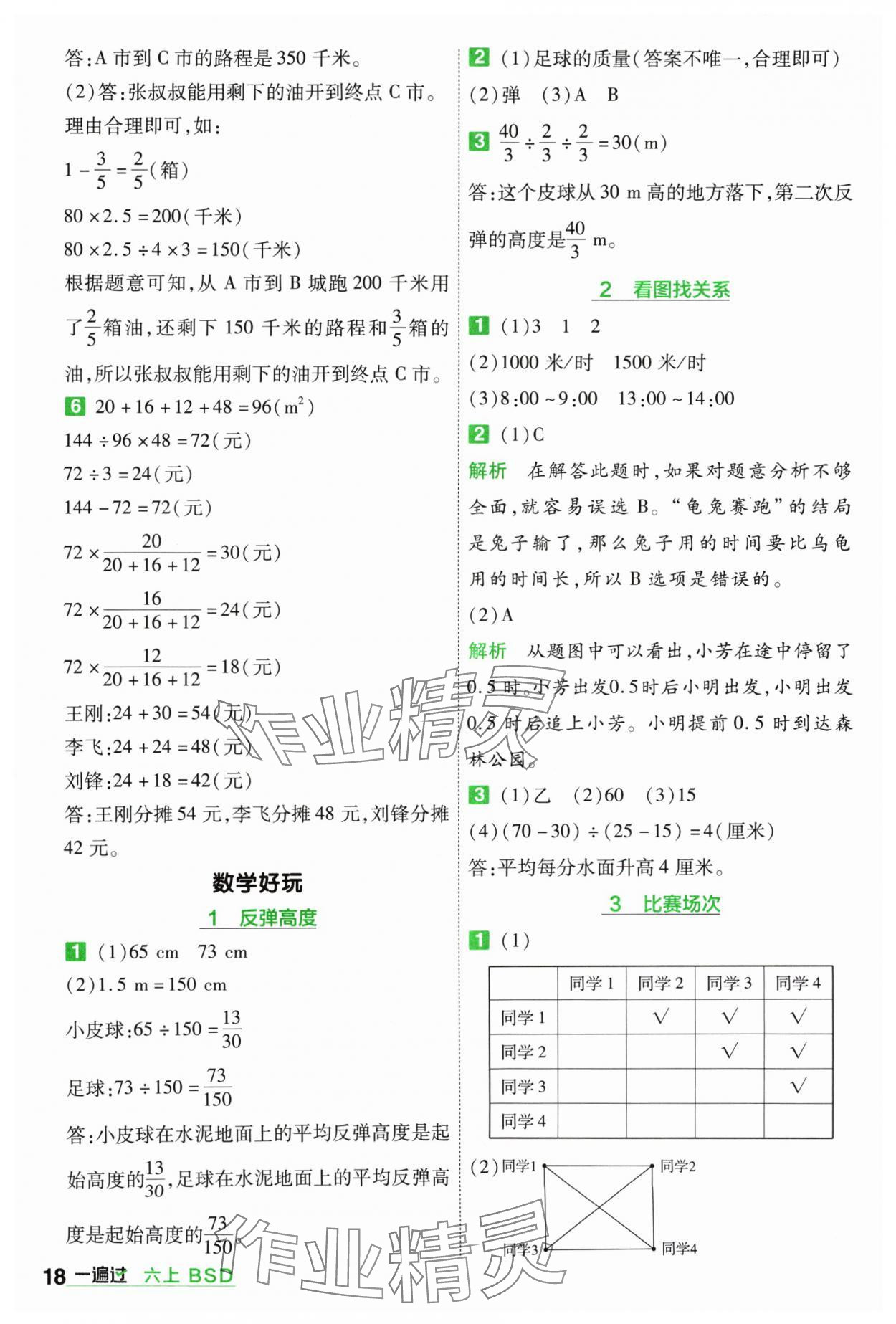 注:目前有些书本章节名称可能整理的还不是很完善,但都是按照顺序排列的,请同学们按照顺序仔细查找。练习册 2024年一遍过六年级小学数学上册北师大版 答案主要是用来给同学们做完题方便对答案用的,请勿直接抄袭。
