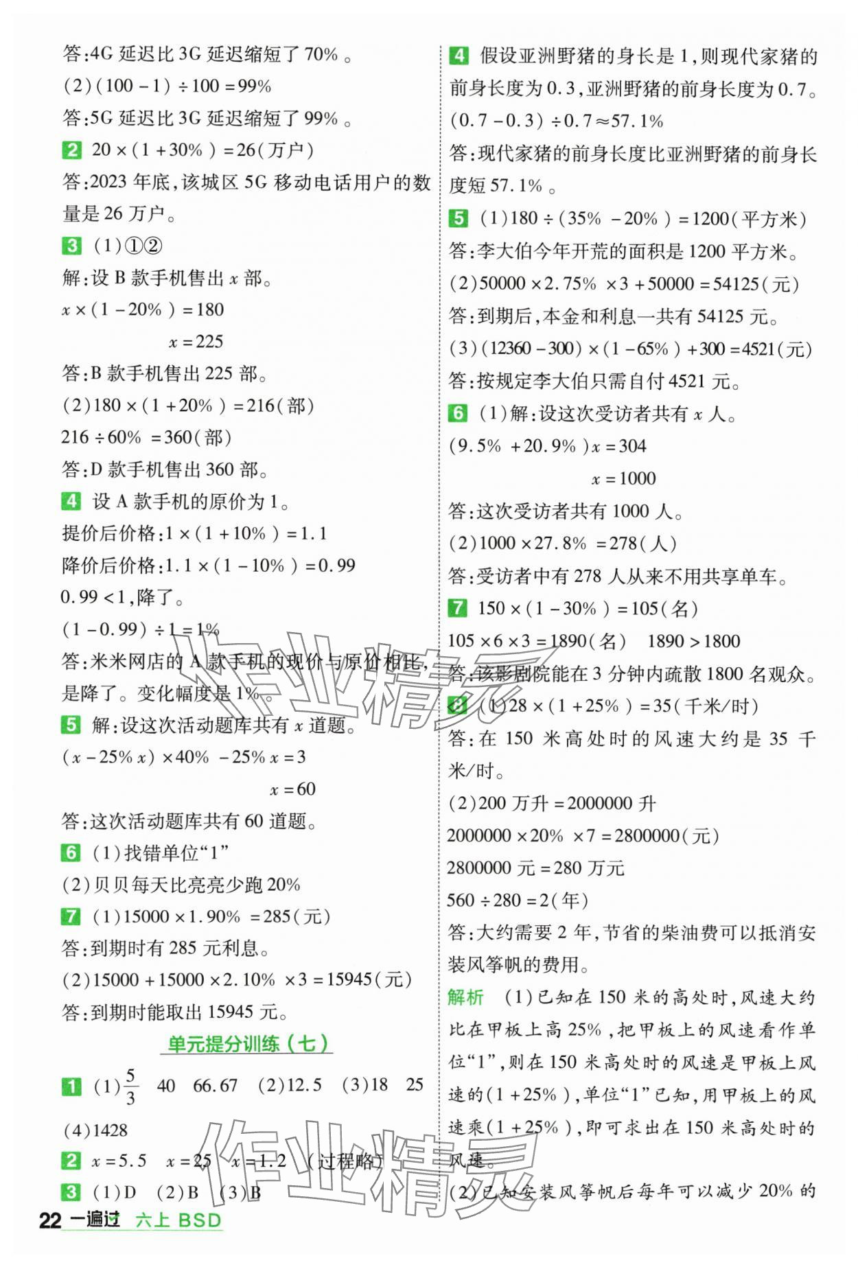注:目前有些书本章节名称可能整理的还不是很完善,但都是按照顺序排列的,请同学们按照顺序仔细查找。练习册 2024年一遍过六年级小学数学上册北师大版 答案主要是用来给同学们做完题方便对答案用的,请勿直接抄袭。