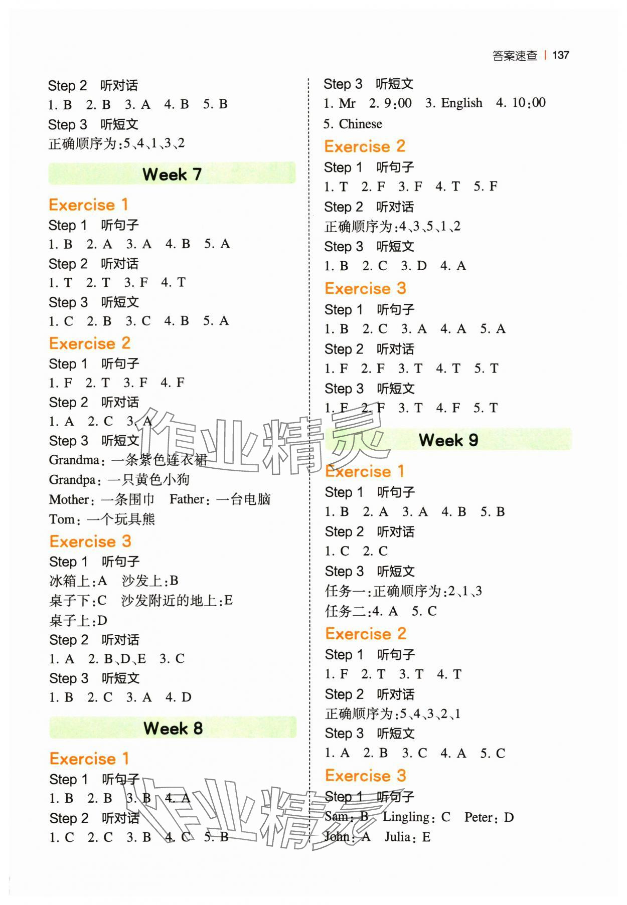 注:目前有些书本章节名称可能整理的还不是很完善,但都是按照顺序排列的,请同学们按照顺序仔细查找。练习册 2024年一本听力话题步步练四年级英语 答案主要是用来给同学们做完题方便对答案用的,请勿直接抄袭。