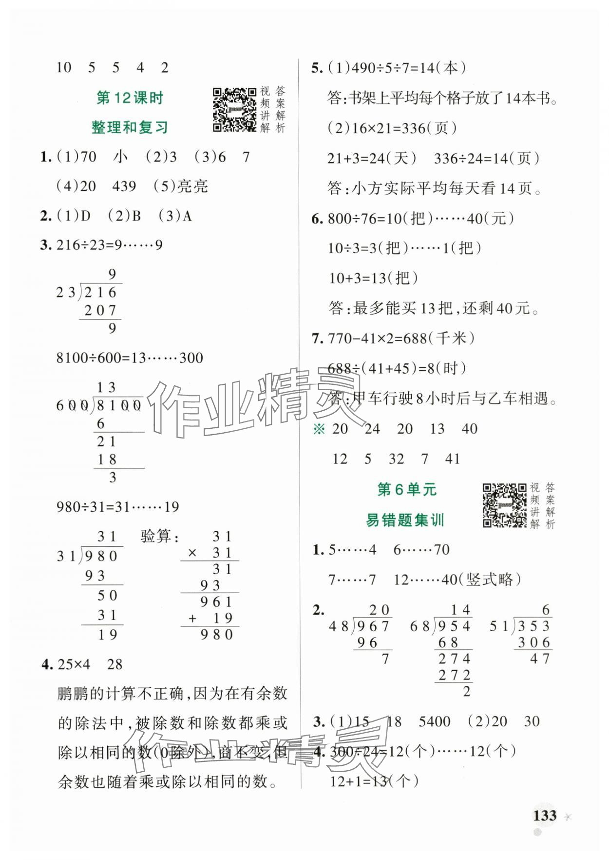 注:目前有些书本章节名称可能整理的还不是很完善,但都是按照顺序排列的,请同学们按照顺序仔细查找。练习册 2024年小学学霸作业本四年级数学上册人教版 答案主要是用来给同学们做完题方便对答案用的,请勿直接抄袭。