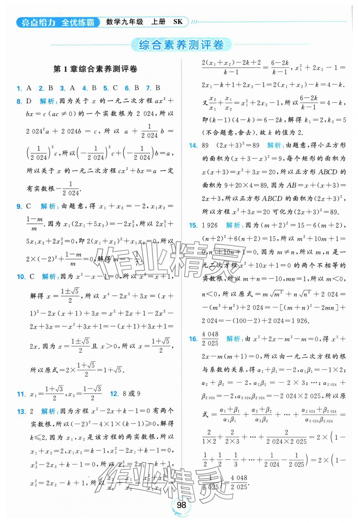 2024年亮点给力全优练霸九年级数学上册苏科版