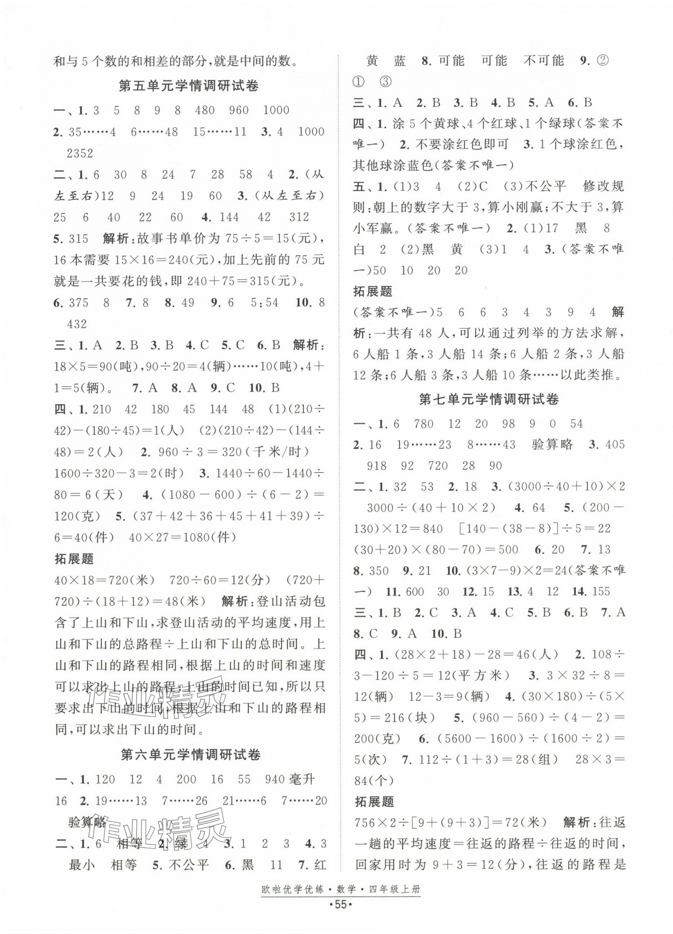 注:目前有些书本章节名称可能整理的还不是很完善,但都是按照顺序排列的,请同学们按照顺序仔细查找。练习册 2024年欧啦优学优练四年级数学上册苏教版 答案主要是用来给同学们做完题方便对答案用的,请勿直接抄袭。