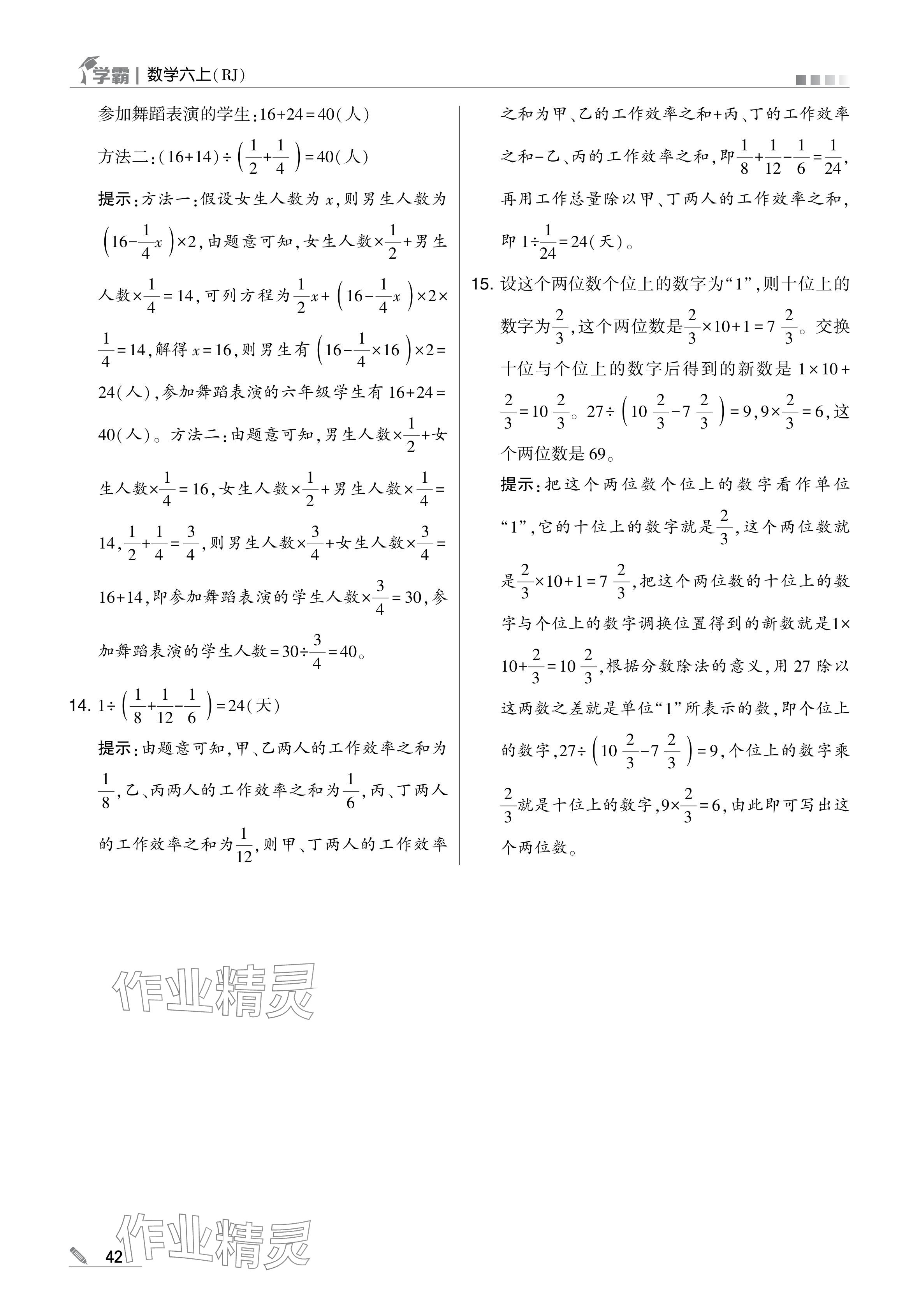 2024年学霸甘肃少年儿童出版社六年级数学上册人教版