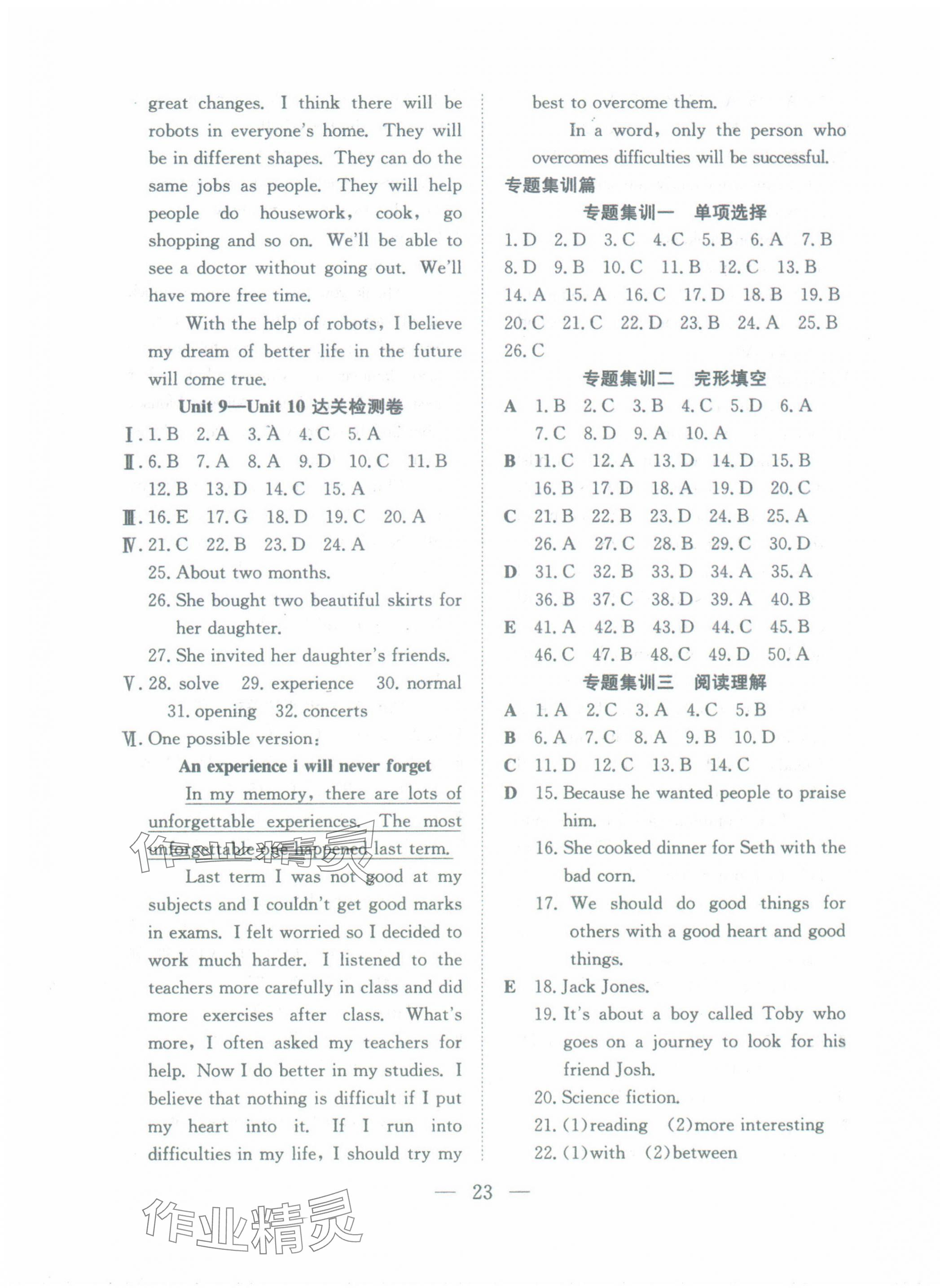 注:目前有些书本章节名称可能整理的还不是很完善,但都是按照顺序排列的,请同学们按照顺序仔细查找。练习册 2024年暑假训练营学年总复习希望出版社八年级英语人教版 答案主要是用来给同学们做完题方便对答案用的,请勿直接抄袭。
