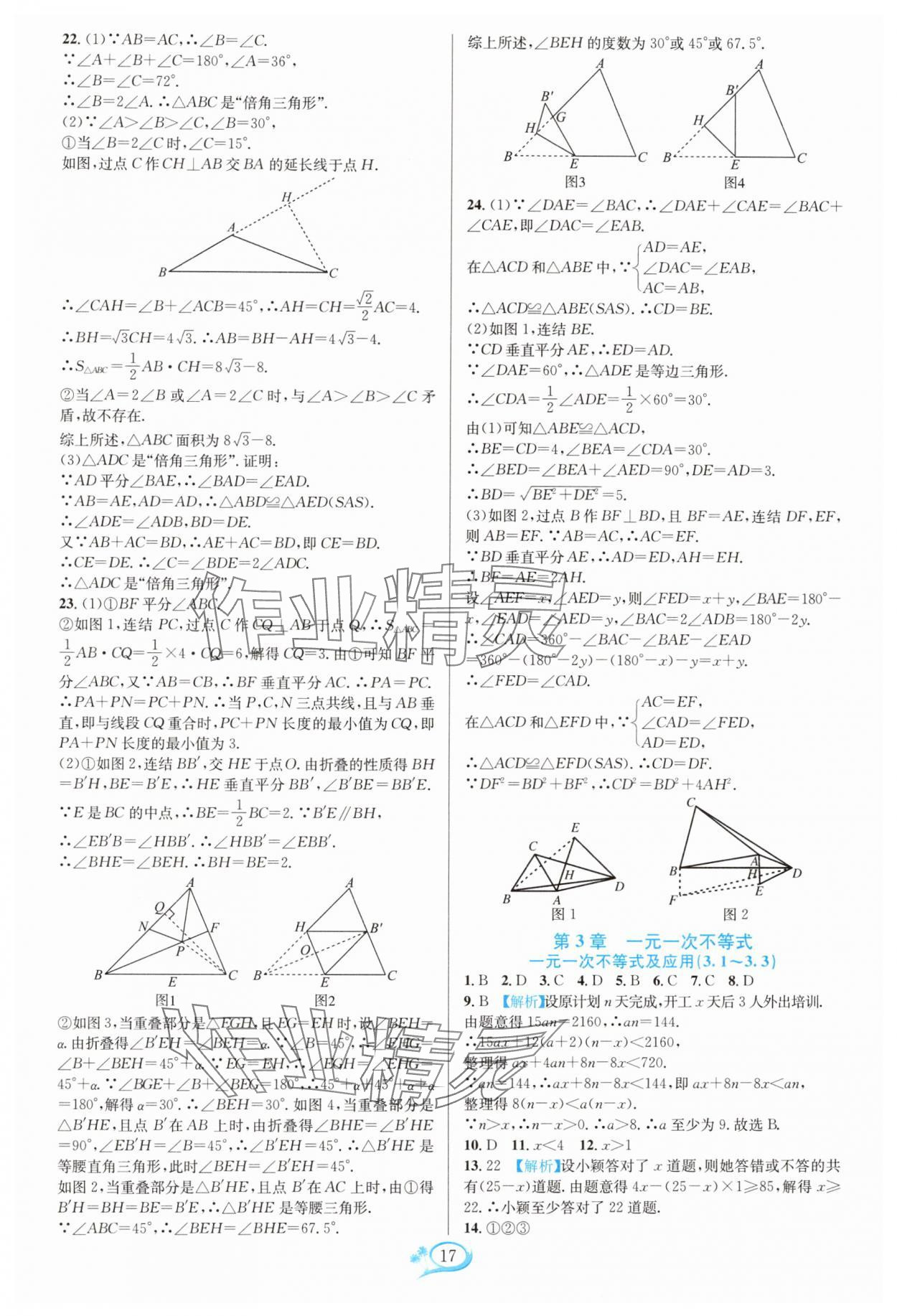 注:目前有些书本章节名称可能整理的还不是很完善,但都是按照顺序排列的,请同学们按照顺序仔细查找。练习册 2024年走进重高培优测试八年级数学上册浙教版 答案主要是用来给同学们做完题方便对答案用的,请勿直接抄袭。