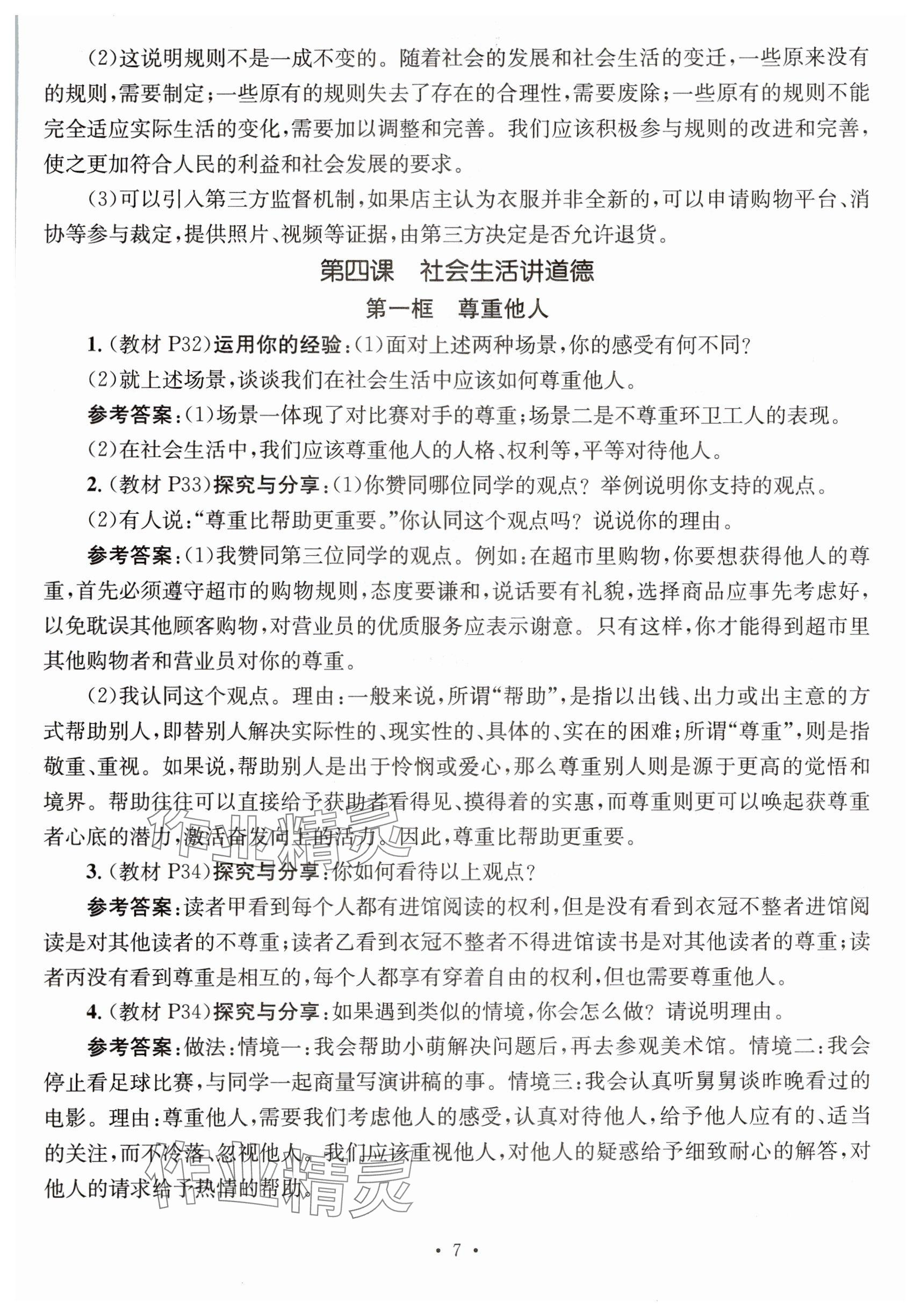 注:目前有些书本章节名称可能整理的还不是很完善,但都是按照顺序排列的,请同学们按照顺序仔细查找。练习册 2024年教材课本八年级道德与法治上册人教版 答案主要是用来给同学们做完题方便对答案用的,请勿直接抄袭。