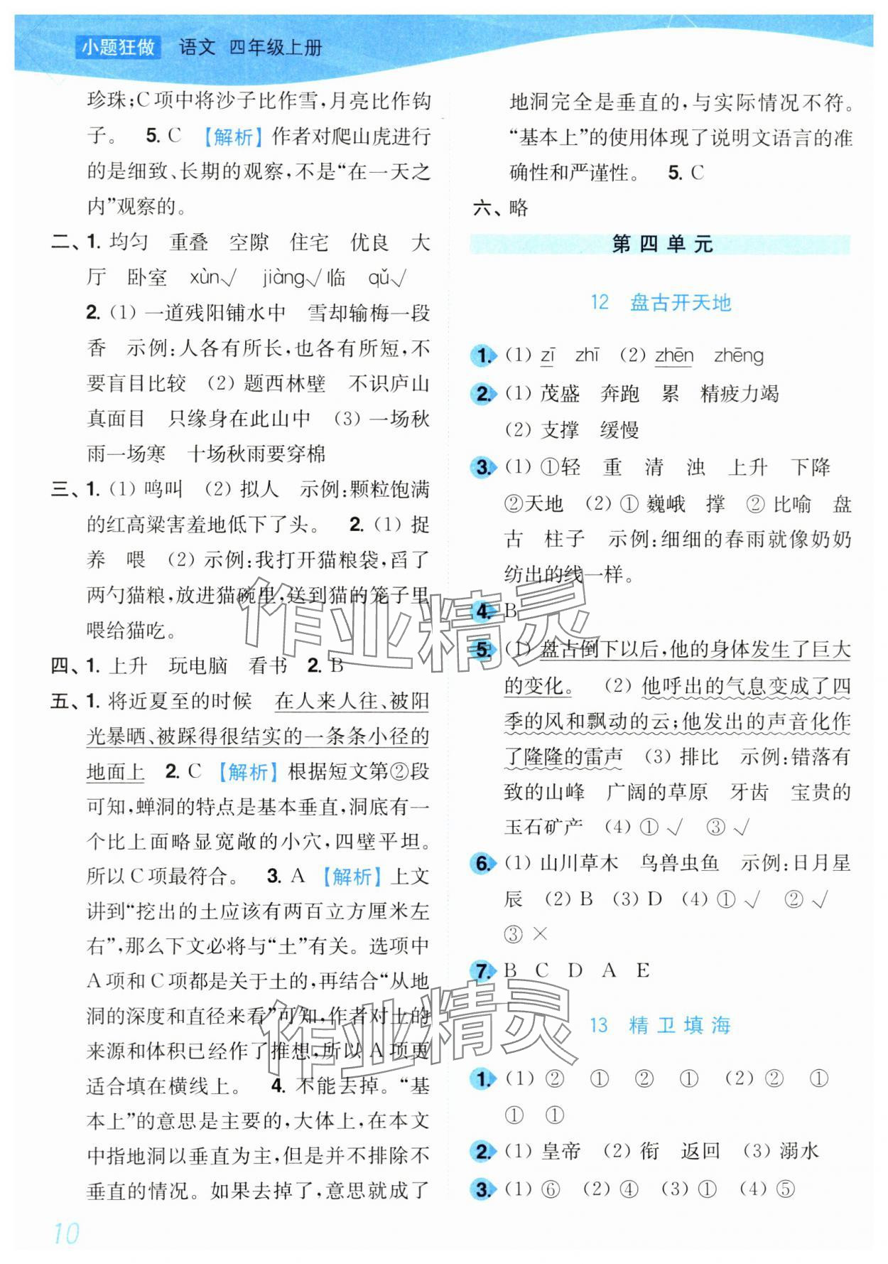 注:目前有些书本章节名称可能整理的还不是很完善,但都是按照顺序排列的,请同学们按照顺序仔细查找。练习册 2024年小题狂做培优作业本四年级语文上册人教版 答案主要是用来给同学们做完题方便对答案用的,请勿直接抄袭。
