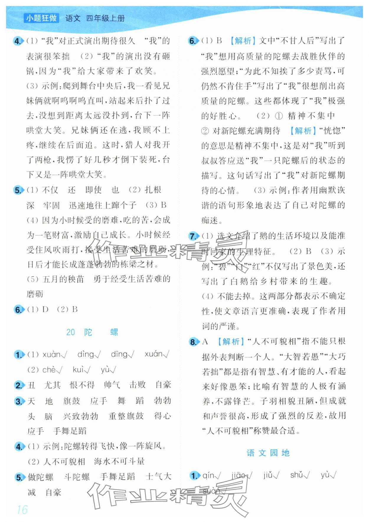 注:目前有些书本章节名称可能整理的还不是很完善,但都是按照顺序排列的,请同学们按照顺序仔细查找。练习册 2024年小题狂做培优作业本四年级语文上册人教版 答案主要是用来给同学们做完题方便对答案用的,请勿直接抄袭。