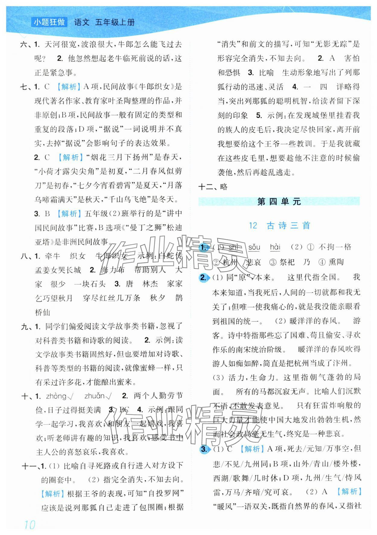 注:目前有些书本章节名称可能整理的还不是很完善,但都是按照顺序排列的,请同学们按照顺序仔细查找。练习册 2024年小题狂做培优作业本五年级语文上册人教版 答案主要是用来给同学们做完题方便对答案用的,请勿直接抄袭。