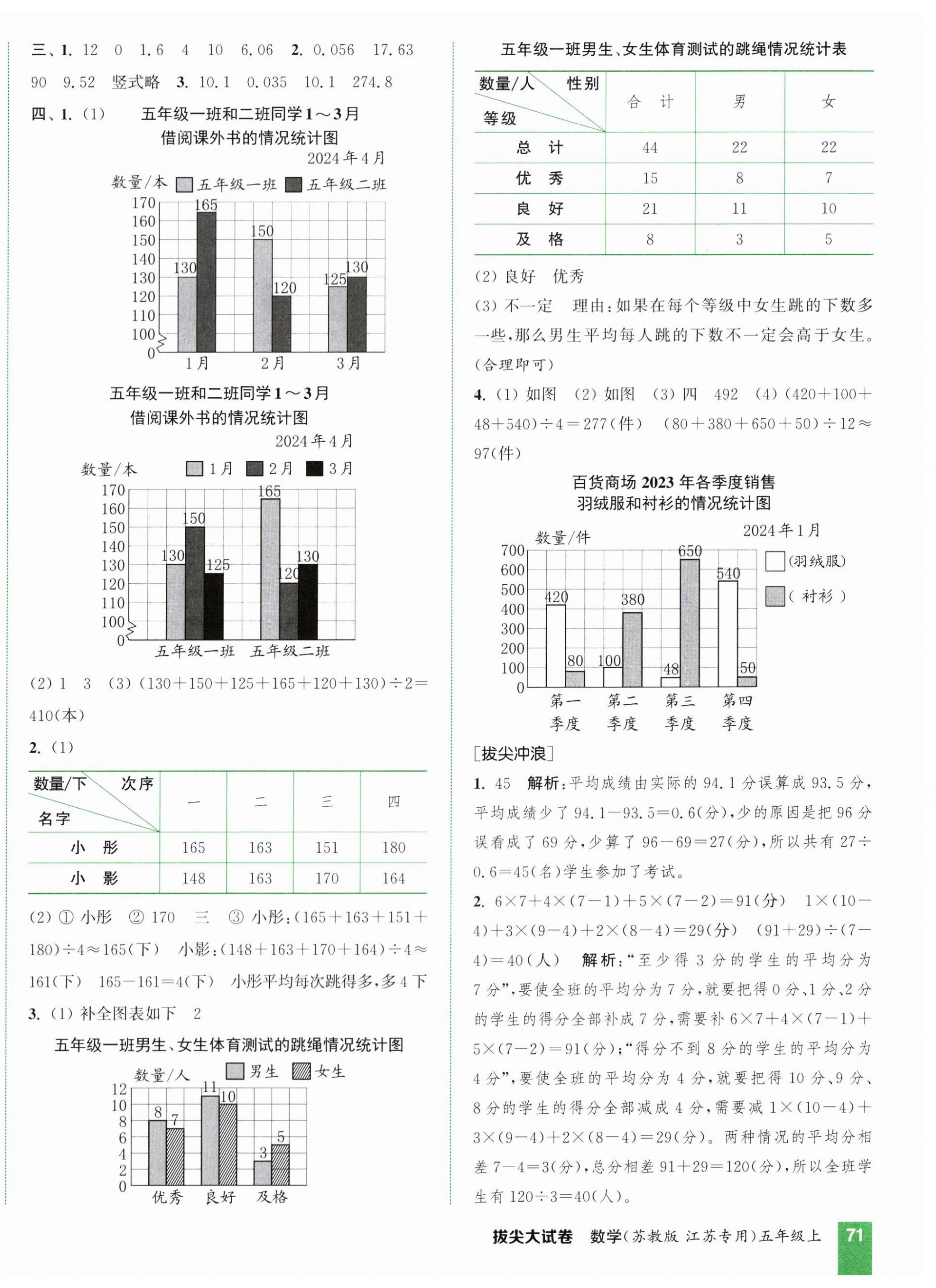 注:目前有些书本章节名称可能整理的还不是很完善,但都是按照顺序排列的,请同学们按照顺序仔细查找。练习册 2024年通城学典拔尖大试卷五年级数学上册苏教版江苏专版 答案主要是用来给同学们做完题方便对答案用的,请勿直接抄袭。