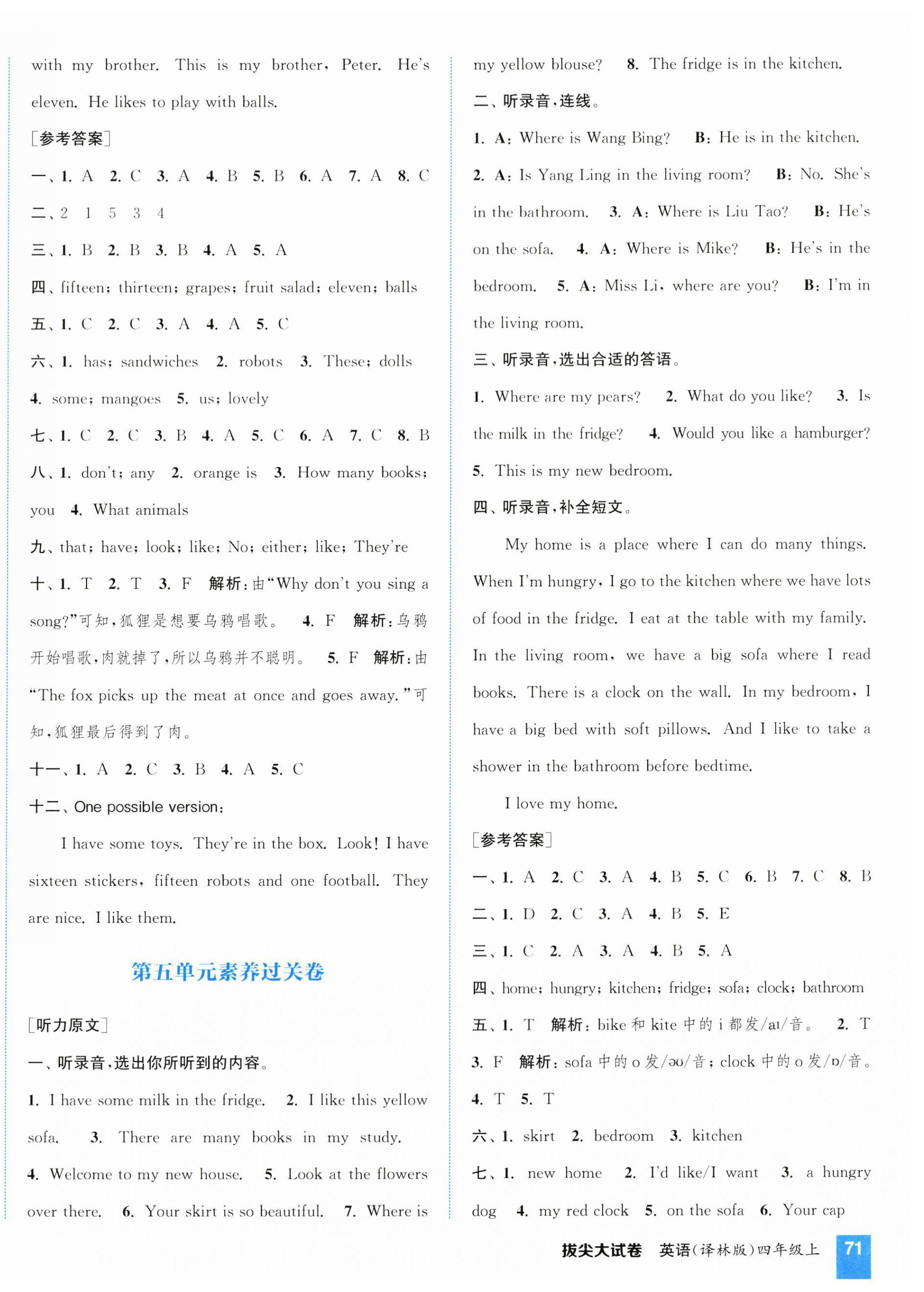注:目前有些书本章节名称可能整理的还不是很完善,但都是按照顺序排列的,请同学们按照顺序仔细查找。练习册 2024年通城学典拔尖大试卷四年级英语上册译林版江苏专版 答案主要是用来给同学们做完题方便对答案用的,请勿直接抄袭。