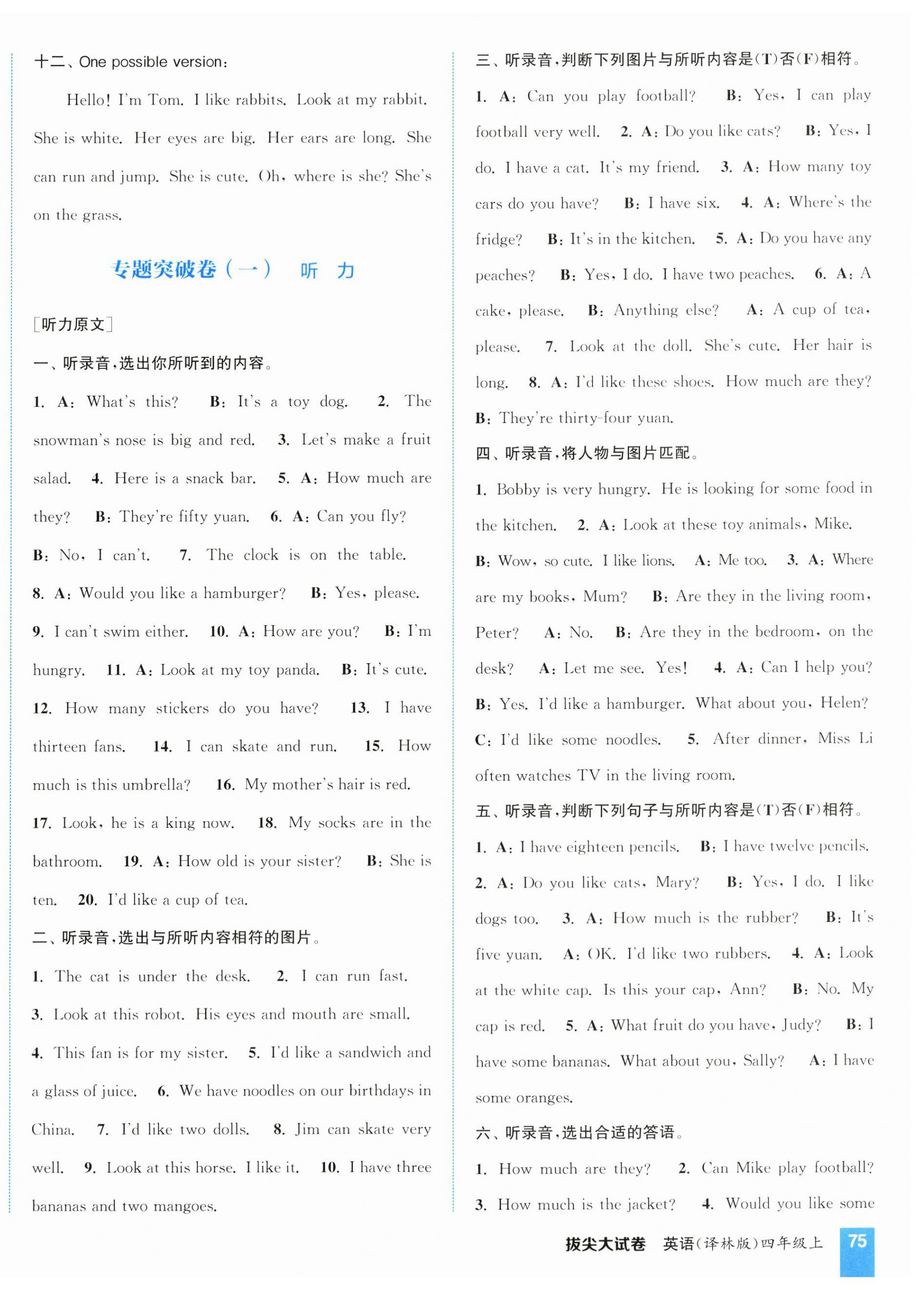 注:目前有些书本章节名称可能整理的还不是很完善,但都是按照顺序排列的,请同学们按照顺序仔细查找。练习册 2024年通城学典拔尖大试卷四年级英语上册译林版江苏专版 答案主要是用来给同学们做完题方便对答案用的,请勿直接抄袭。
