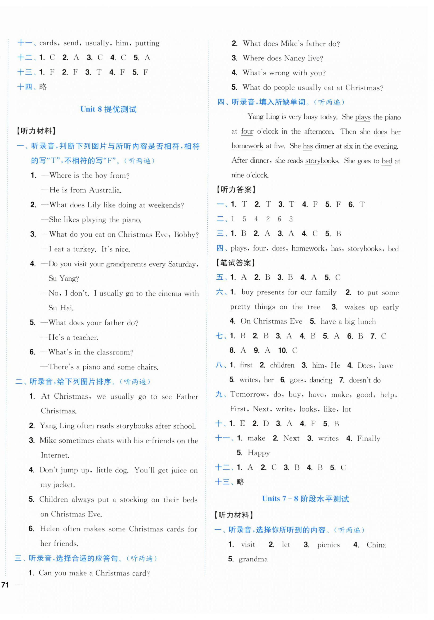 注:目前有些书本章节名称可能整理的还不是很完善,但都是按照顺序排列的,请同学们按照顺序仔细查找。练习册 2024年小题狂做全程测评卷五年级英语上册译林版 答案主要是用来给同学们做完题方便对答案用的,请勿直接抄袭。