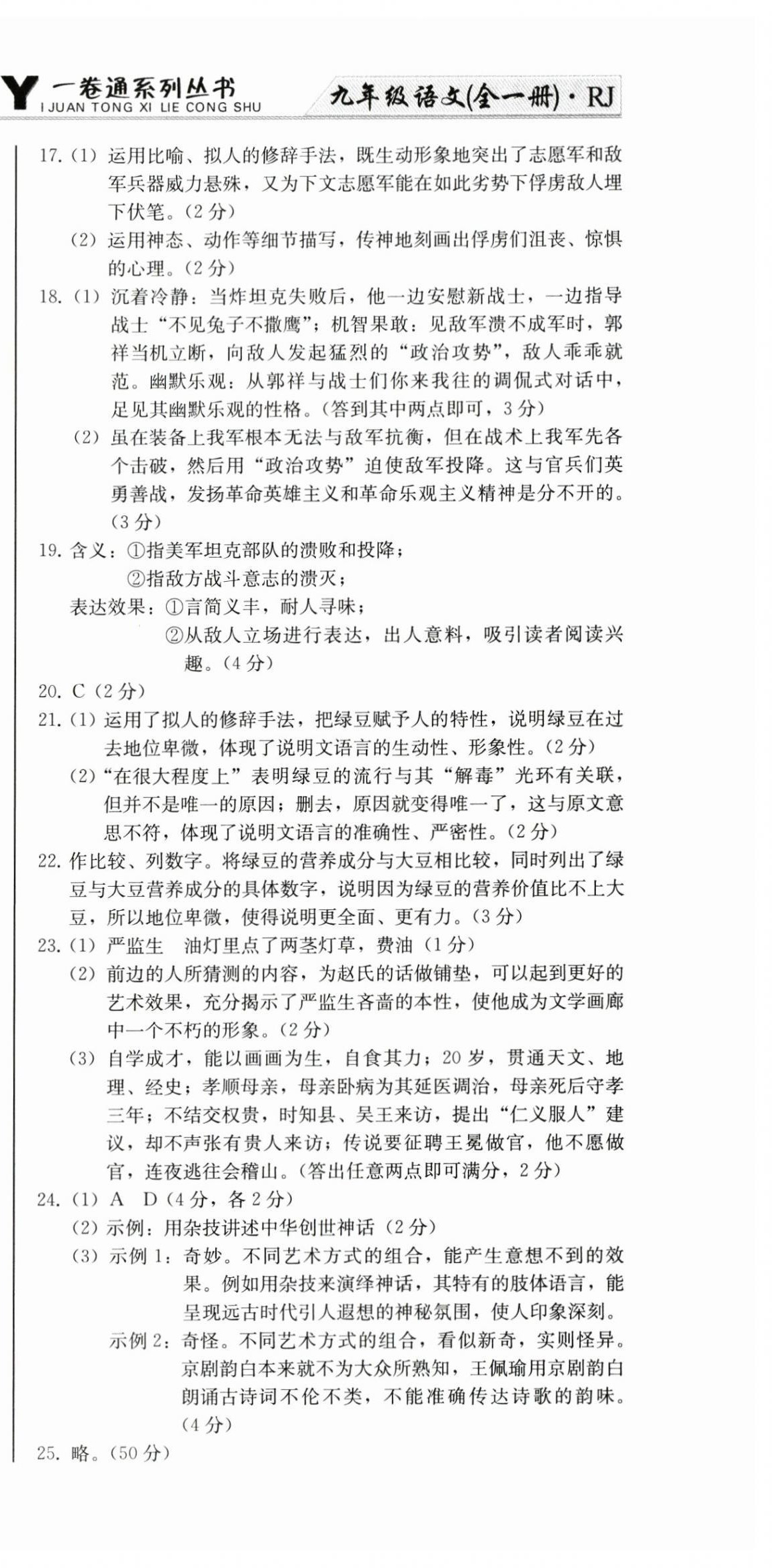 注:目前有些书本章节名称可能整理的还不是很完善,但都是按照顺序排列的,请同学们按照顺序仔细查找。练习册 2024年同步优化测试卷一卷通九年级语文全一册人教版 答案主要是用来给同学们做完题方便对答案用的,请勿直接抄袭。