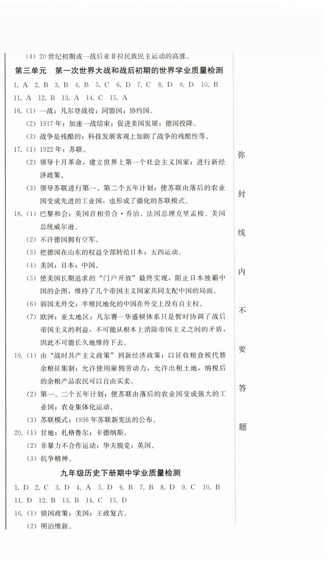 注:目前有些书本章节名称可能整理的还不是很完善,但都是按照顺序排列的,请同学们按照顺序仔细查找。练习册 2024年同步优化测试卷一卷通九年级历史全一册人教版 答案主要是用来给同学们做完题方便对答案用的,请勿直接抄袭。