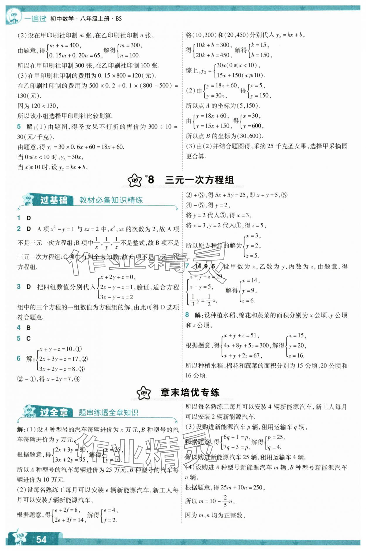 注:目前有些书本章节名称可能整理的还不是很完善,但都是按照顺序排列的,请同学们按照顺序仔细查找。练习册 2024年一遍过八年级初中数学上册北师大版 答案主要是用来给同学们做完题方便对答案用的,请勿直接抄袭。