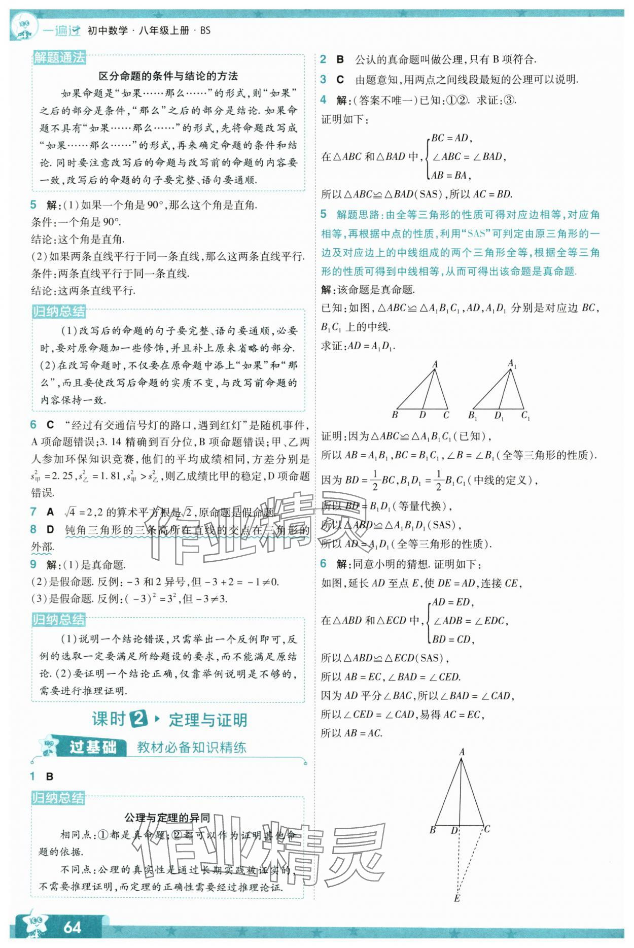 注:目前有些书本章节名称可能整理的还不是很完善,但都是按照顺序排列的,请同学们按照顺序仔细查找。练习册 2024年一遍过八年级初中数学上册北师大版 答案主要是用来给同学们做完题方便对答案用的,请勿直接抄袭。