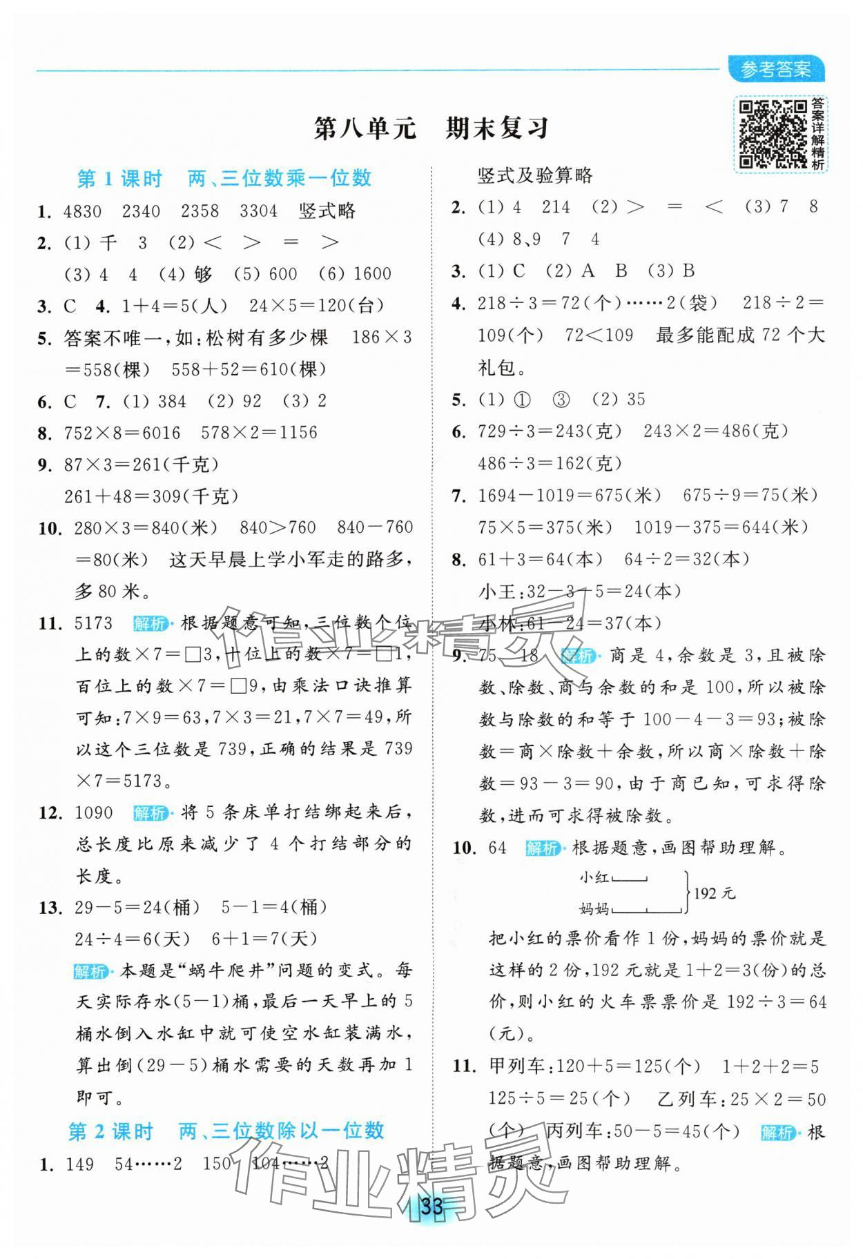 2024年亮点给力全优练霸三年级数学上册苏教版
