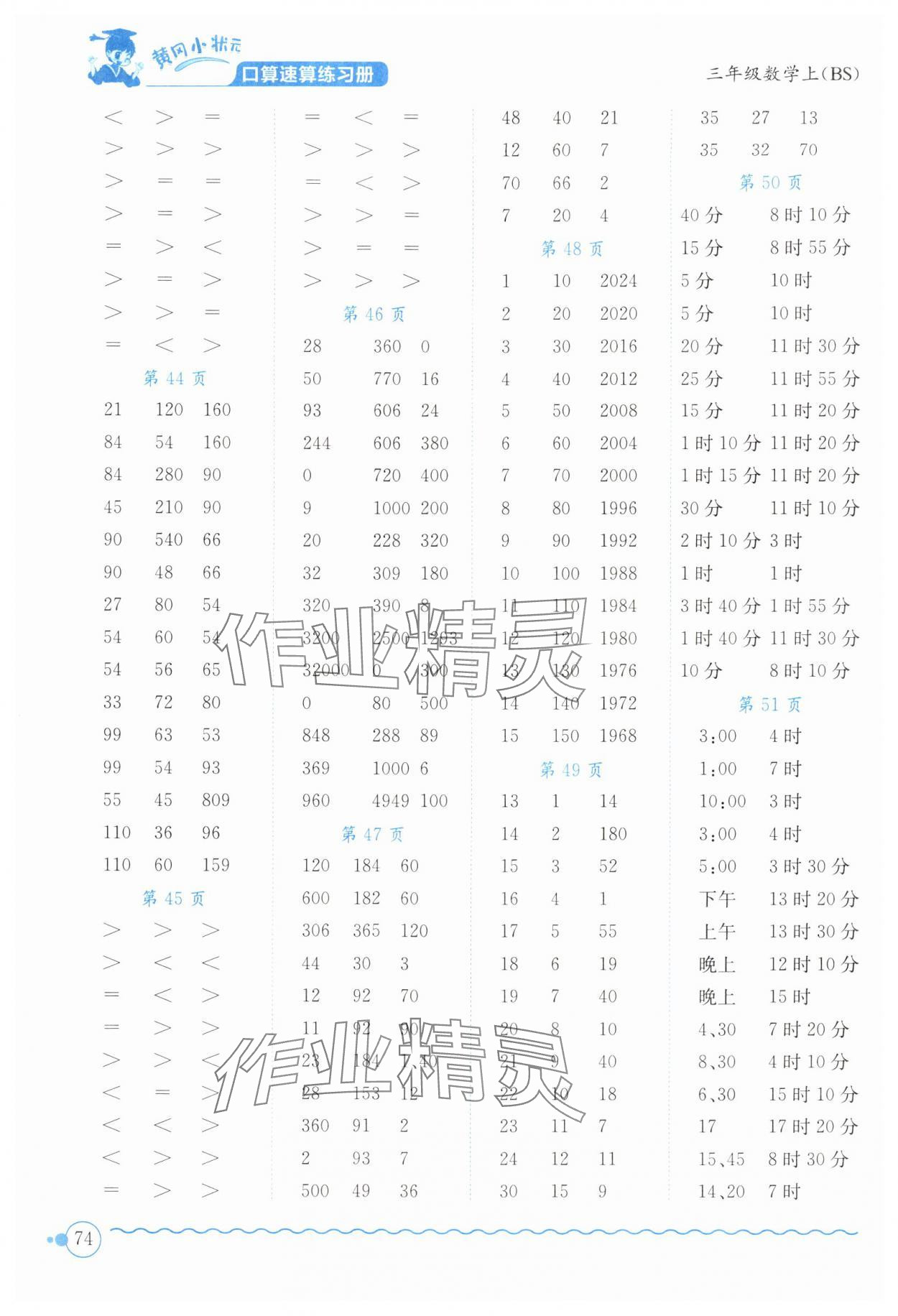 注:目前有些书本章节名称可能整理的还不是很完善,但都是按照顺序排列的,请同学们按照顺序仔细查找。练习册 2024年黄冈小状元口算速算练习册三年级数学上册北师大版广东专版 答案主要是用来给同学们做完题方便对答案用的,请勿直接抄袭。