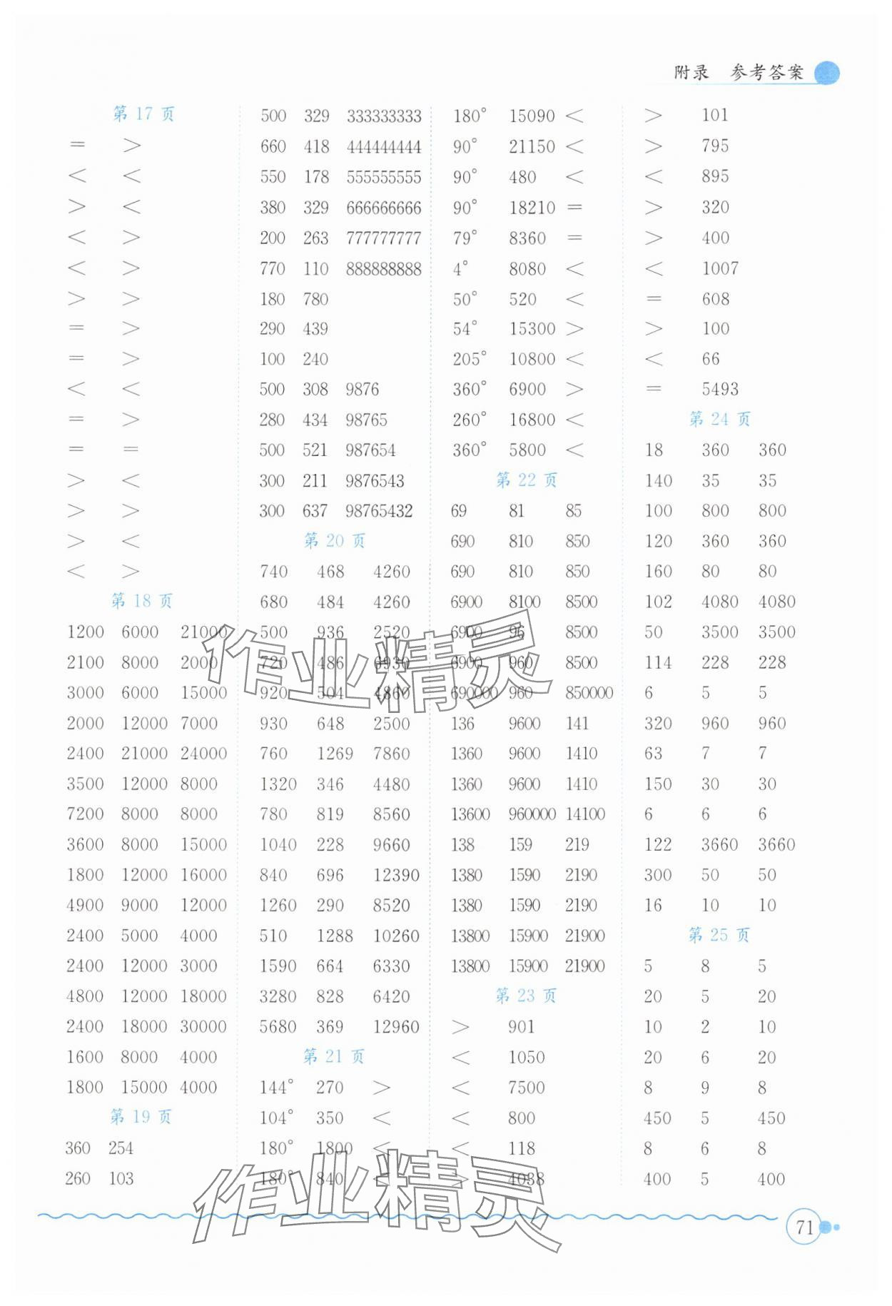 注:目前有些书本章节名称可能整理的还不是很完善,但都是按照顺序排列的,请同学们按照顺序仔细查找。练习册 2024年黄冈小状元口算速算练习册四年级数学上册北师大版广东专版 答案主要是用来给同学们做完题方便对答案用的,请勿直接抄袭。