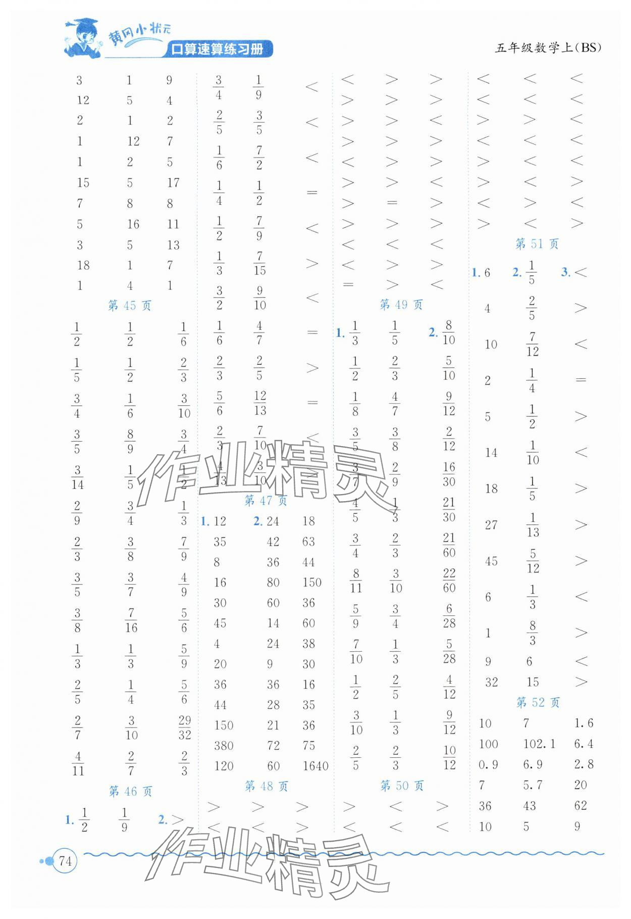 注:目前有些书本章节名称可能整理的还不是很完善,但都是按照顺序排列的,请同学们按照顺序仔细查找。练习册 2024年黄冈小状元口算速算练习册五年级数学上册北师大版广东专版 答案主要是用来给同学们做完题方便对答案用的,请勿直接抄袭。